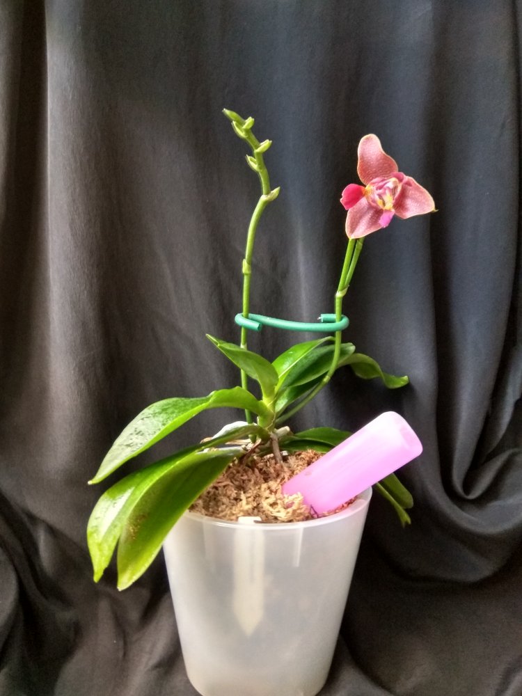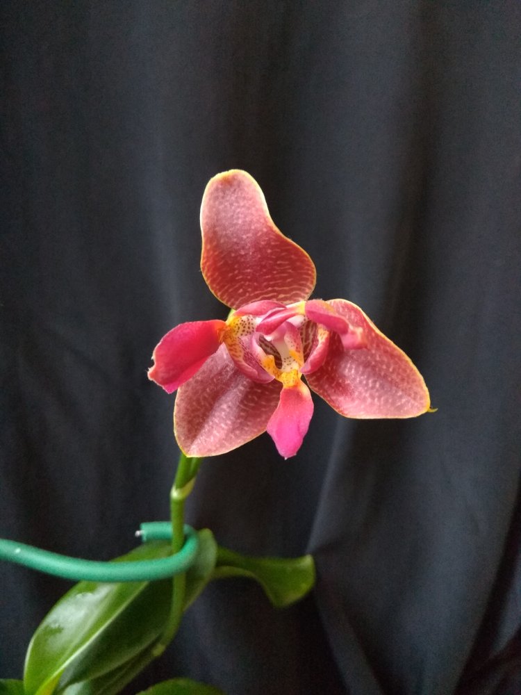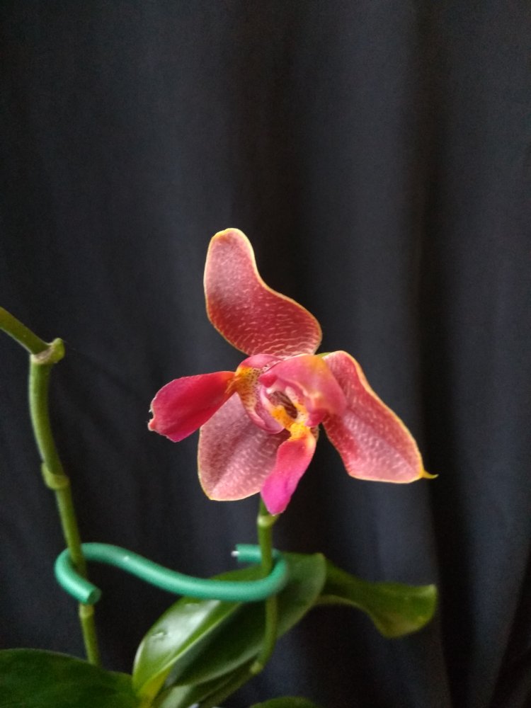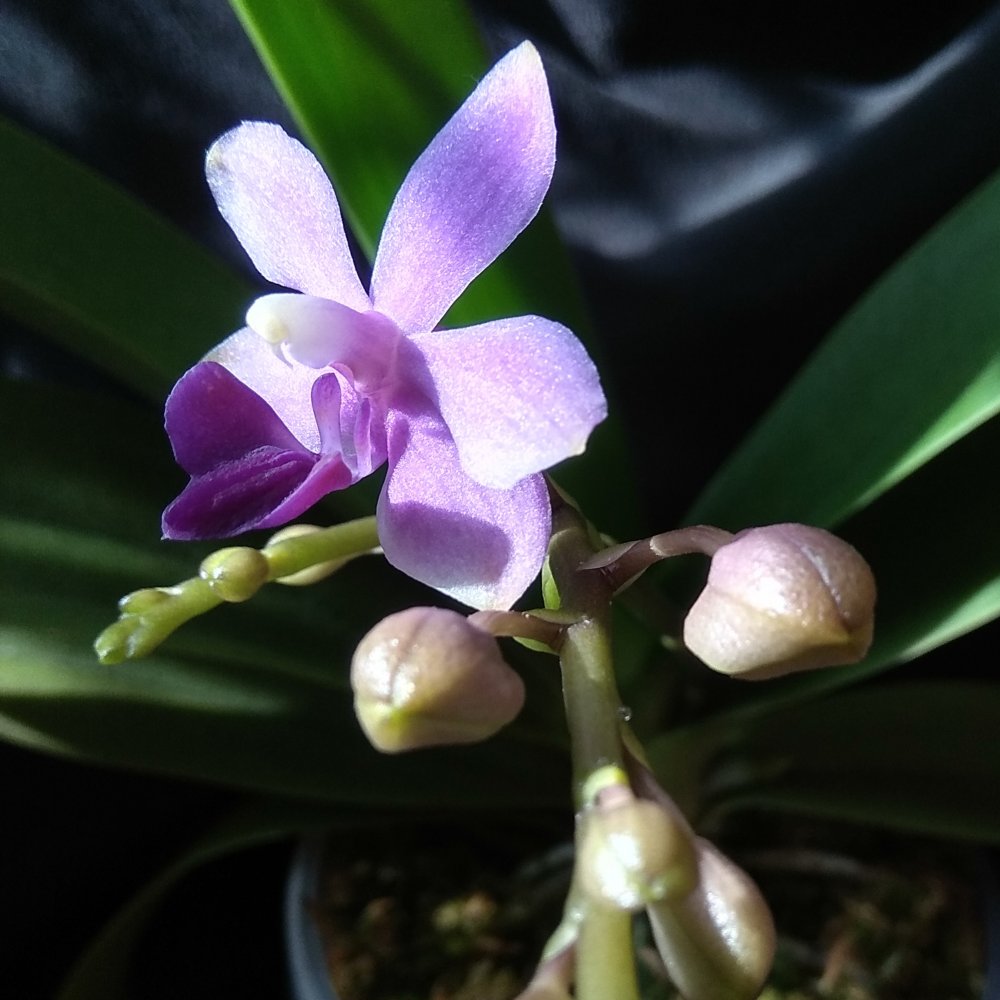 Зацвёл Phal. violacea var. Indigo Red, полученный 26.06.2025: приехал цветуще-отцветающим и одновременно растящим новый цветонос. Вот, дорастил и надул )