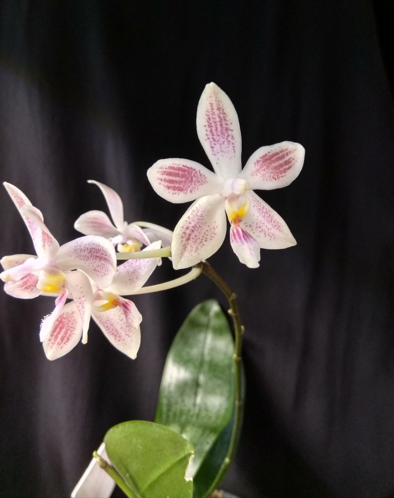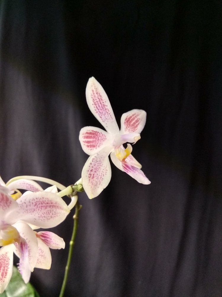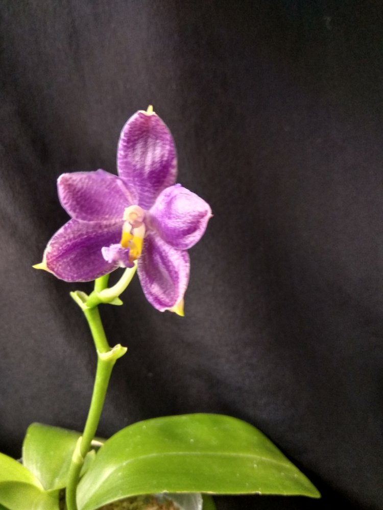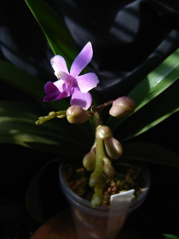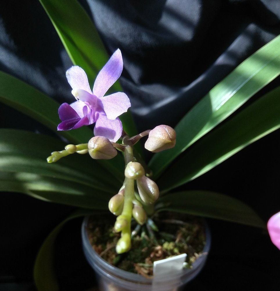 Зацвёл Phal. violacea var. Indigo Red, полученный 26.06.2025: приехал цветуще-отцветающим и одновременно растящим новый цветонос. Вот, дорастил и надул )