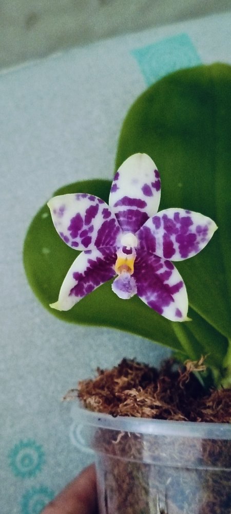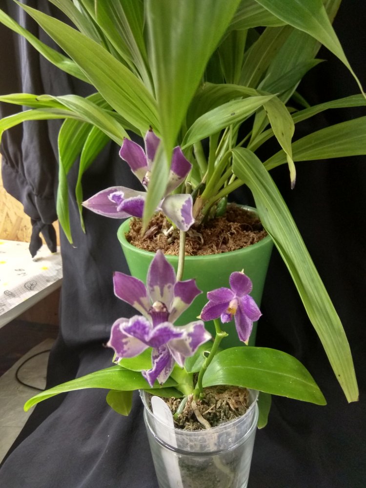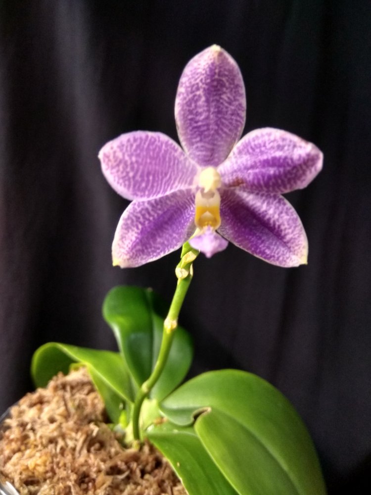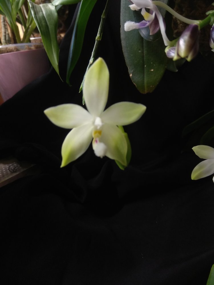 На фото он, он с неутомимым ароматным цветунишкой Phal. Jennifer Palermo cerulea x violacea indigo (это уже 4-й цветок подряд и он опять дует бутон - тьфу-тьфу-тьфу) и он с Phal. Allura Ice & Fire (у которого кто-то украл все пятнышки).