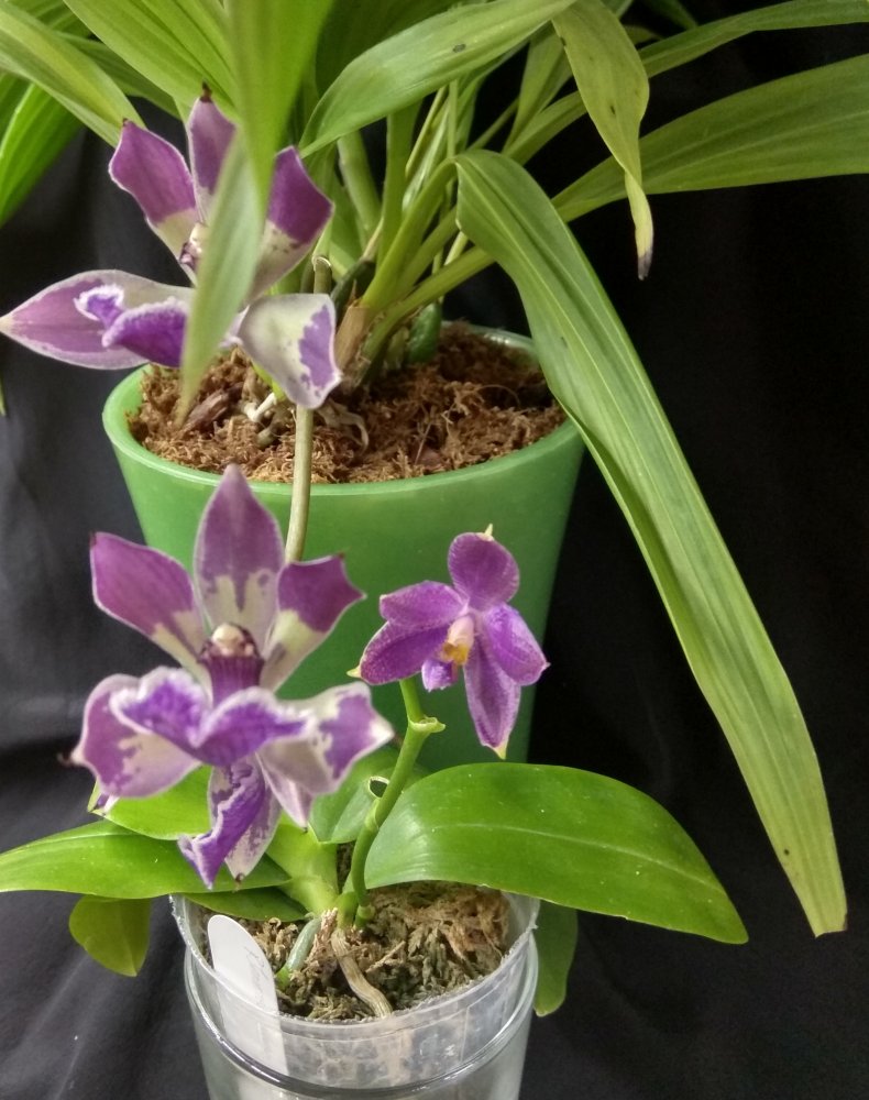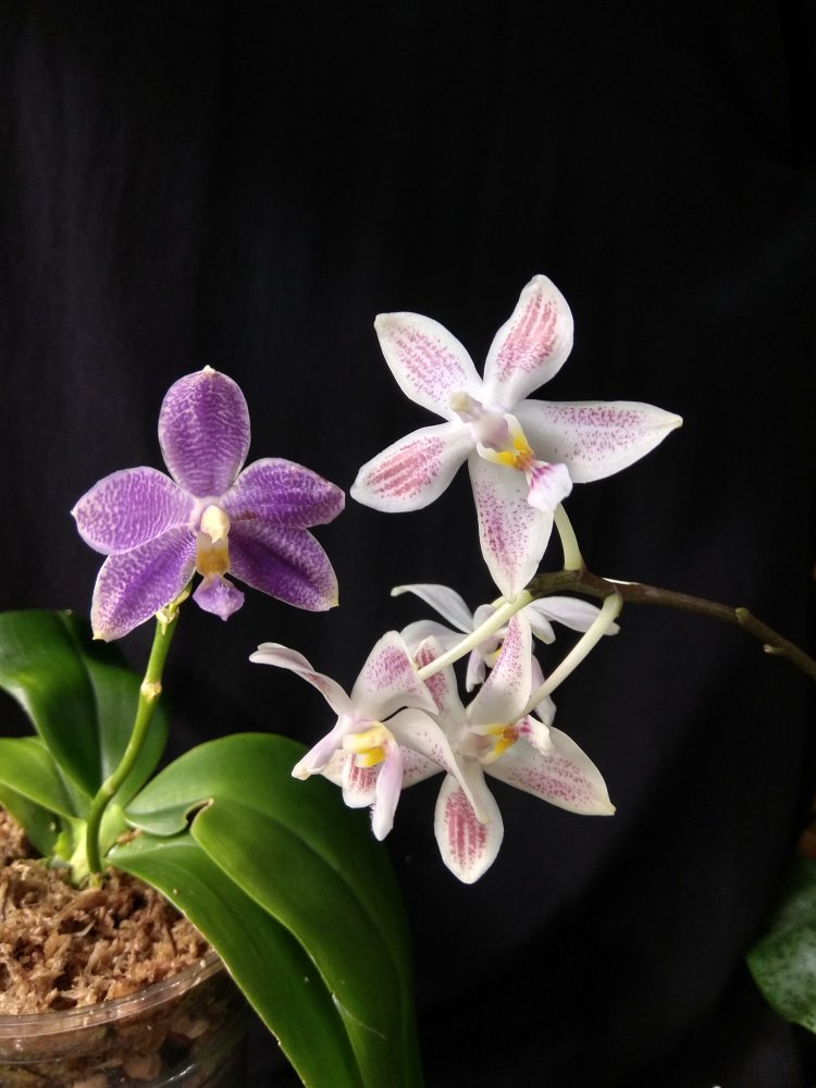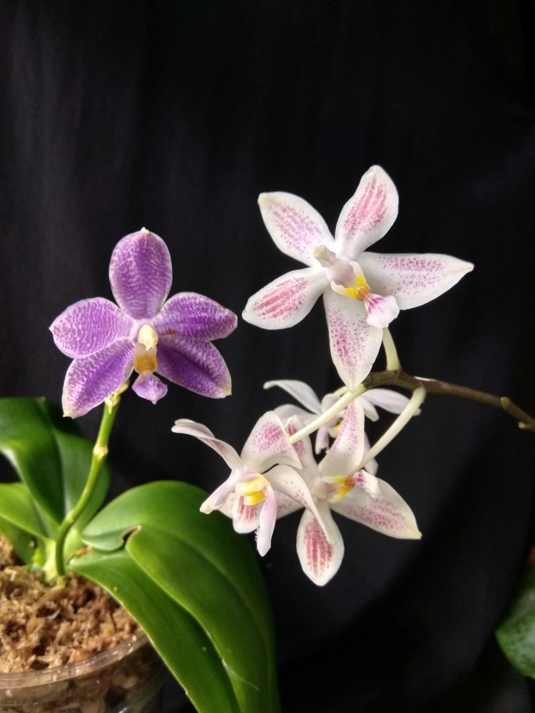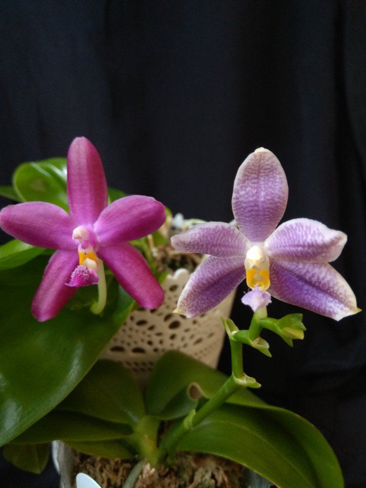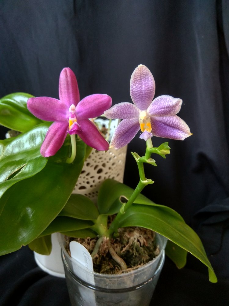 Phal. Jennifer Palermo blue x violacea indigo и Phal. Seto Pixie (tetraspis x celebensis):