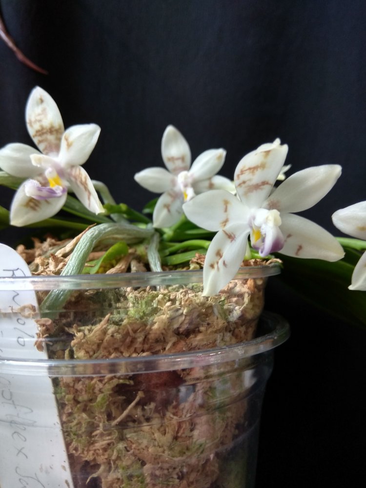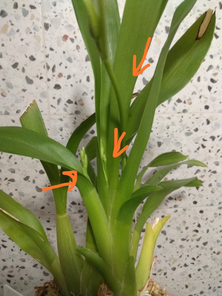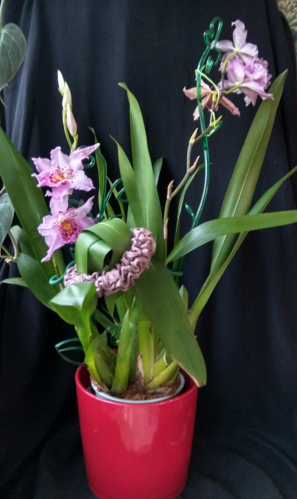 - бульбы стали намного мельче, но, в тоже время, в то цветение она выдала рекордные 4 цветоноса с одной псевдобульбы.