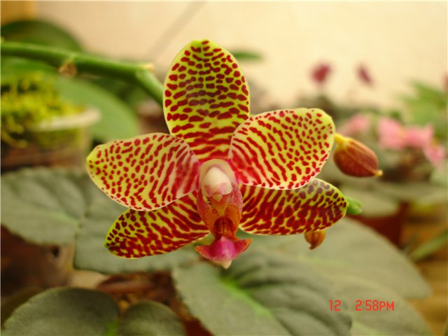 вот мое фото моего Перфекшена, это было не совсем домашнее цветение, он пришел с цветоносом, в дороге цветы помялись, потом отвалились, и все-таки он вытянул еще два бутона, и кстати аромат такой нежный у него. А потом он ушел в себя, сидел, думал, отрастил два листа, хорошо уже начали расти корни и тут лето 2010 - бацА как он выглядит?