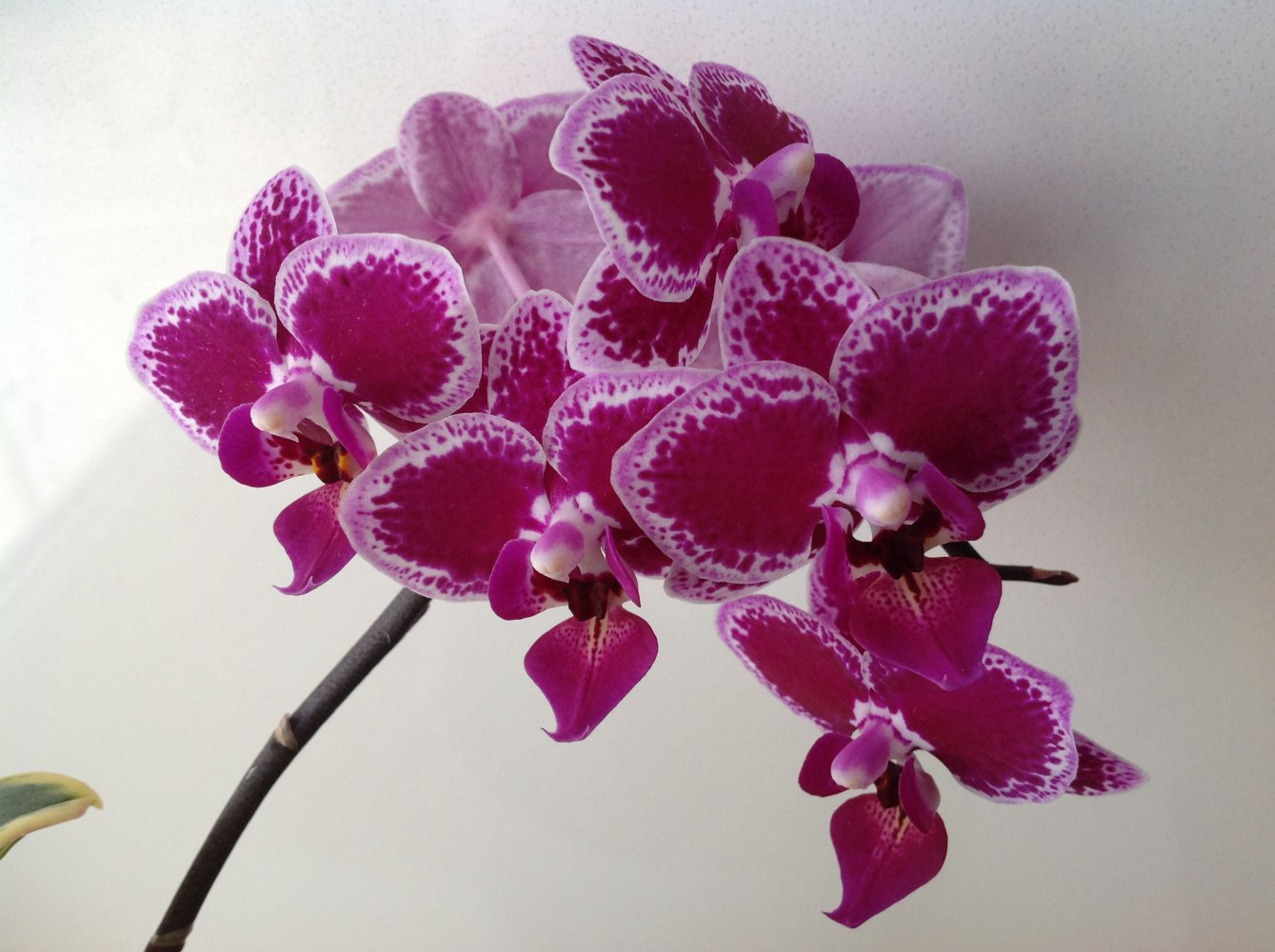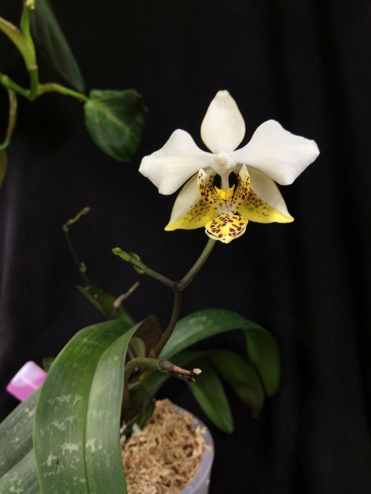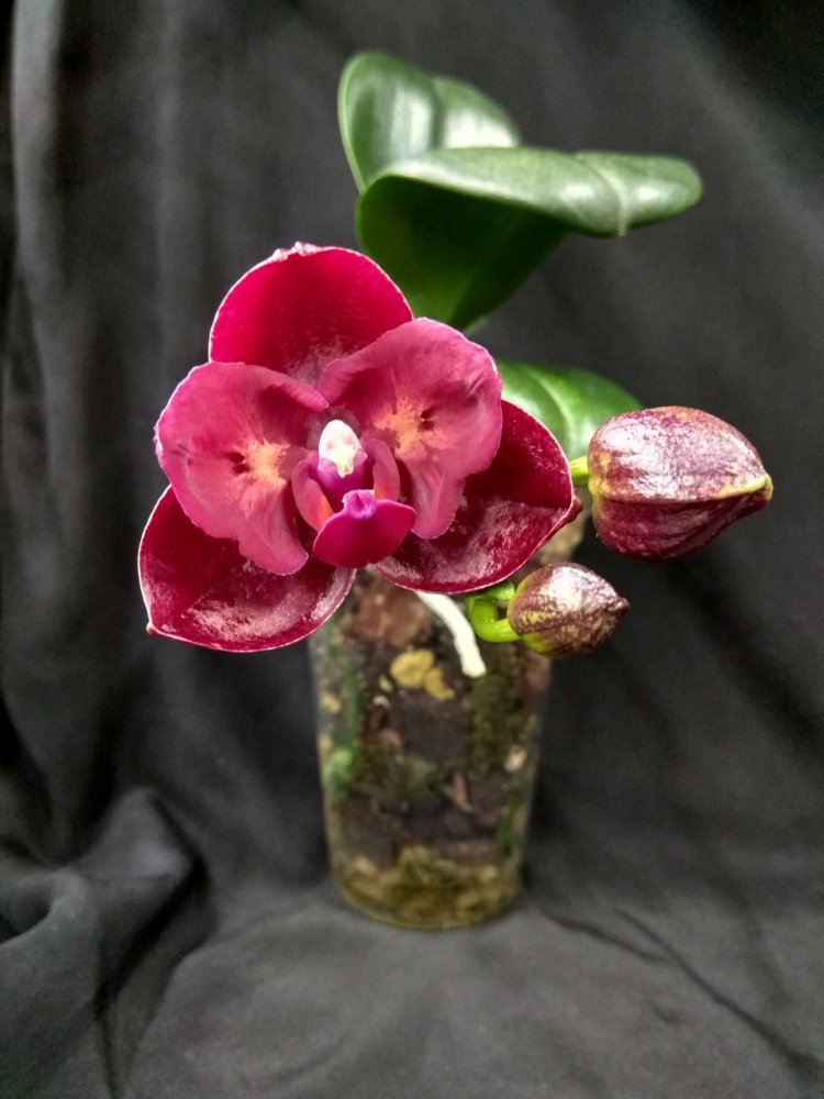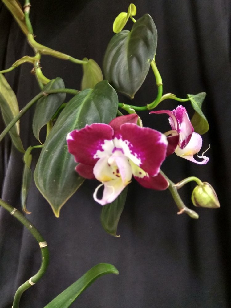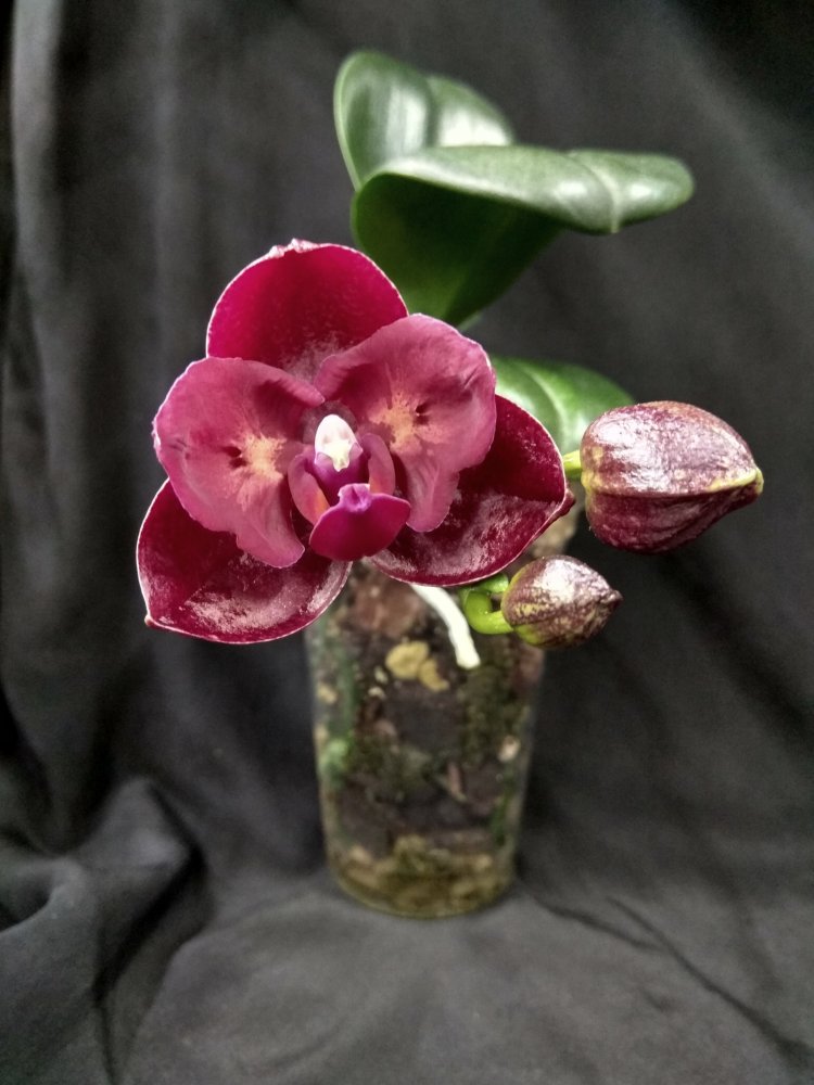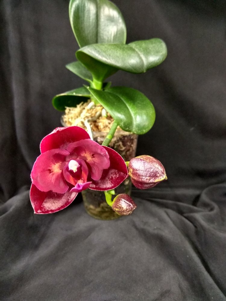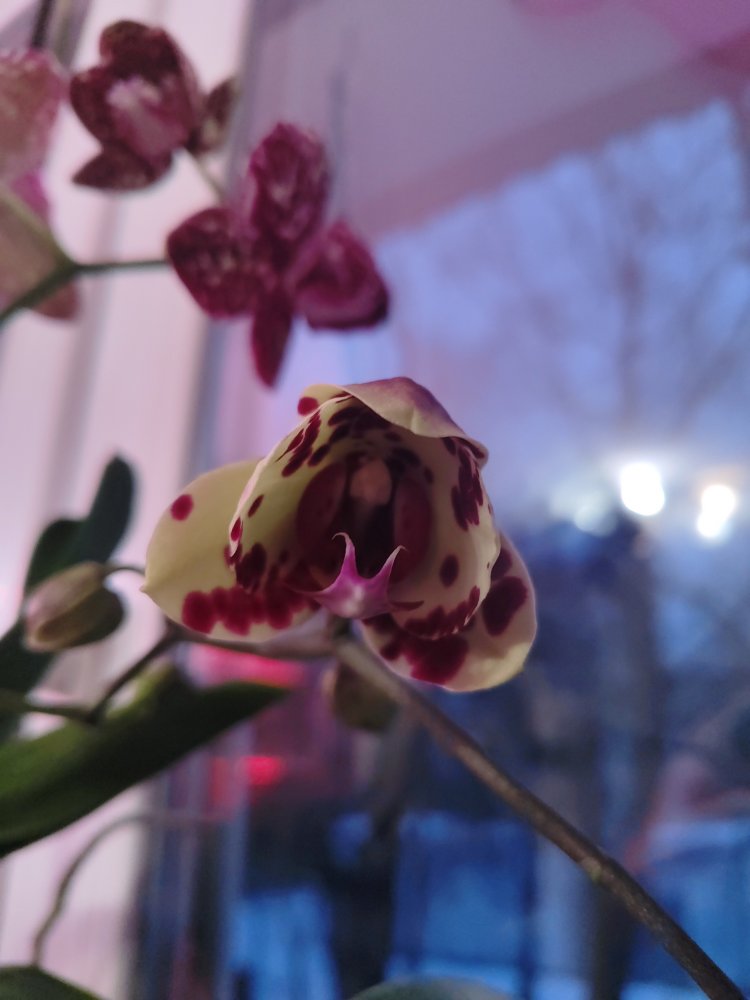 Темненький отдохнул, отрастил 2-й цветонос и пошёл на 2-й круг. В этот раз обещает цветение с 2-х цветоносов: раскрыл цветок на старом йветоносе и параллельно дует бутоны на новом.