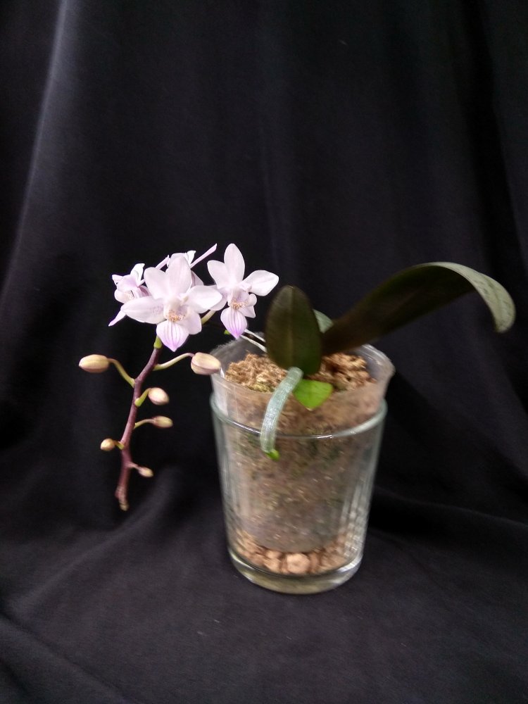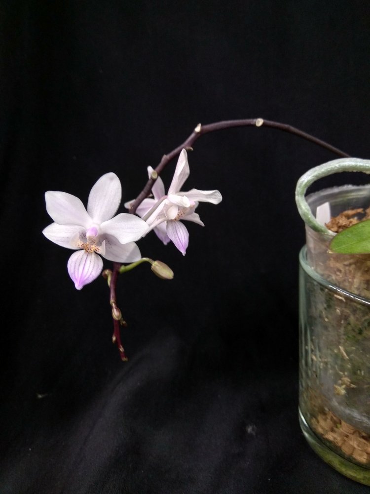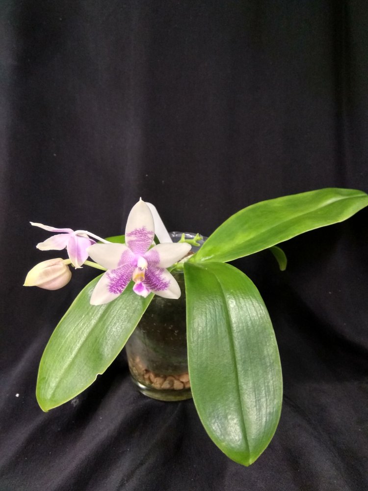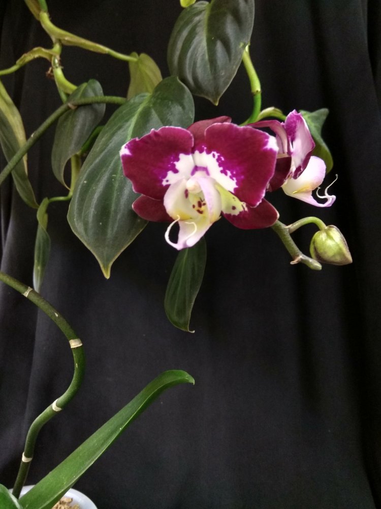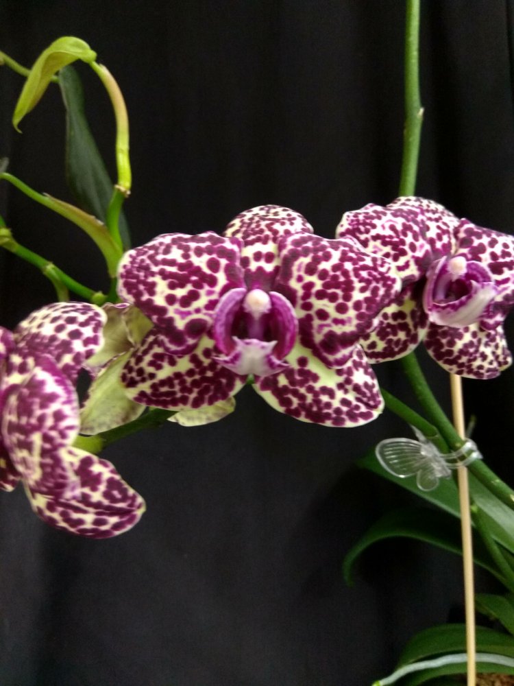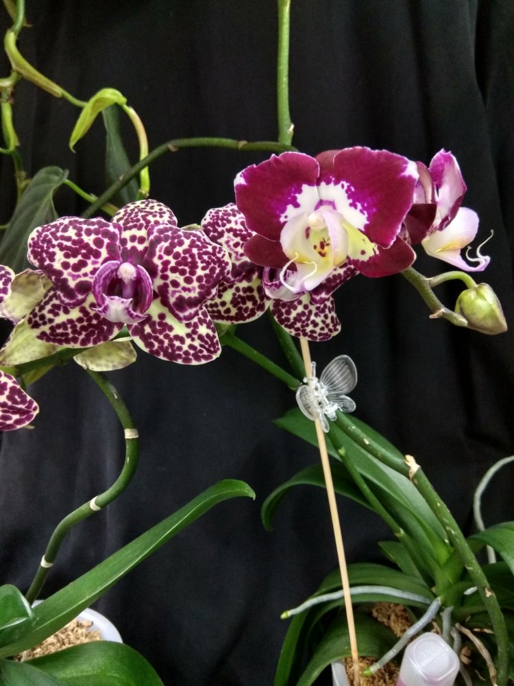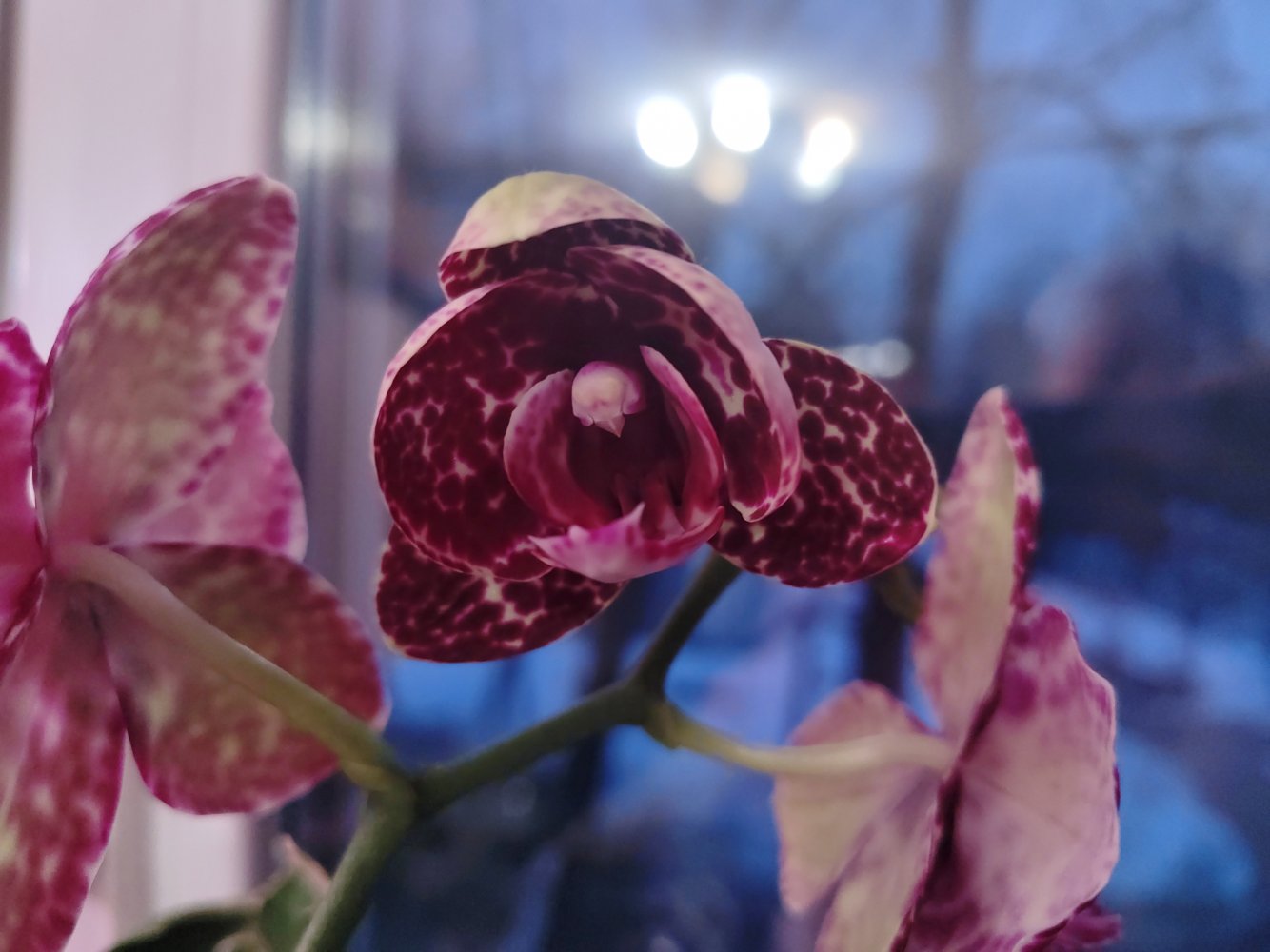 - и чрезвычайно грациозный Phal. Germain Vincent var. blue x lueddemanniana var. coerulea очень старательно надувает бутон и одновременно растит 4-ый цветонос..