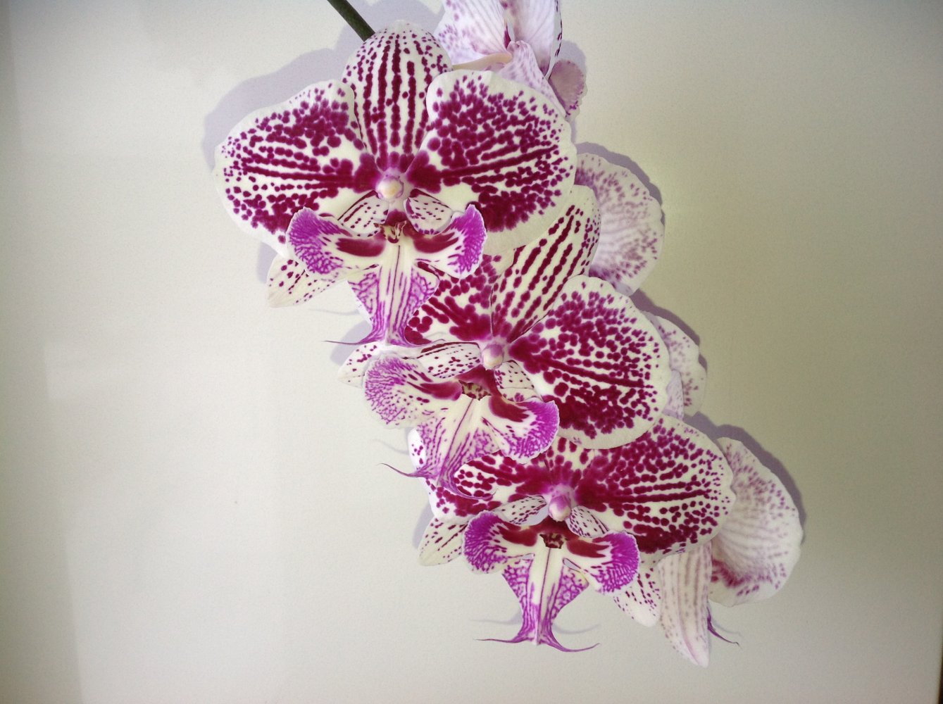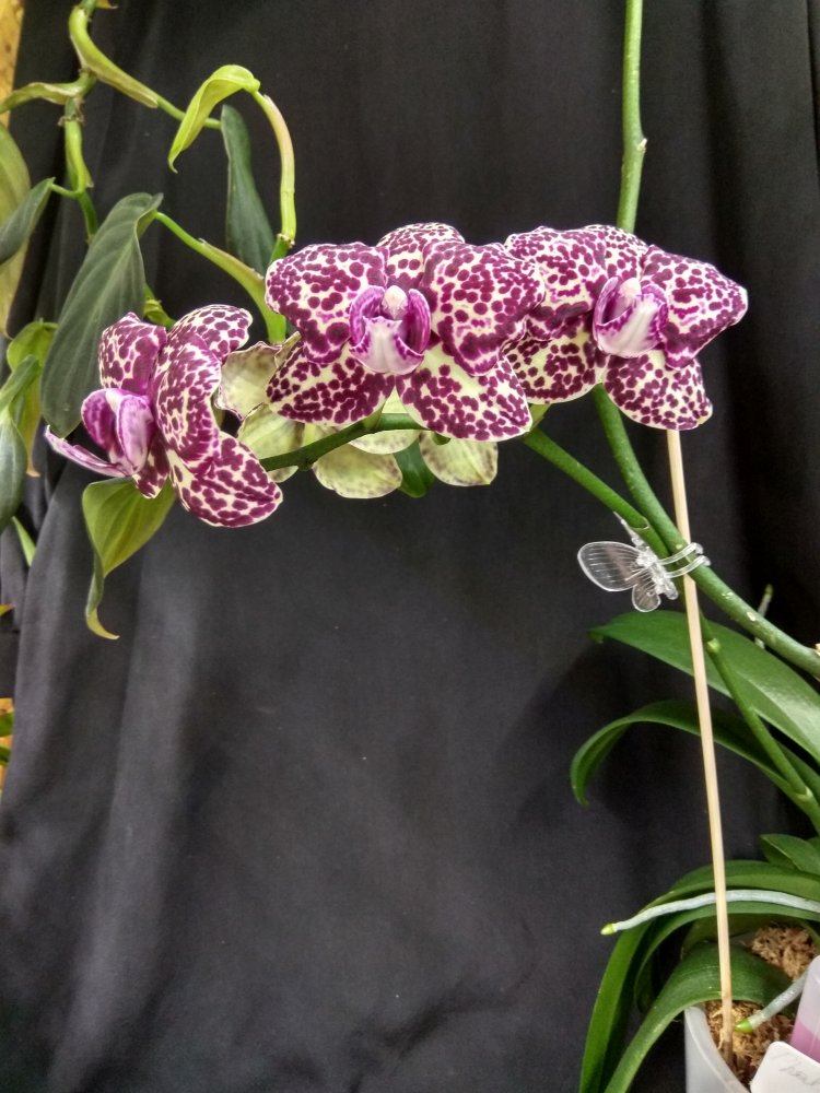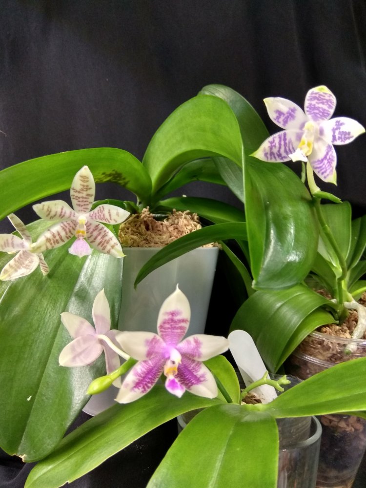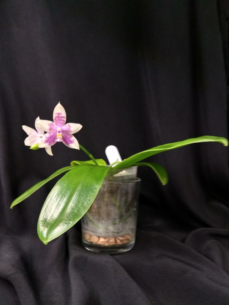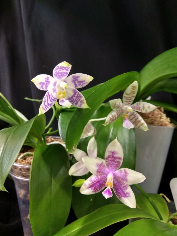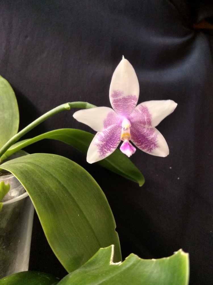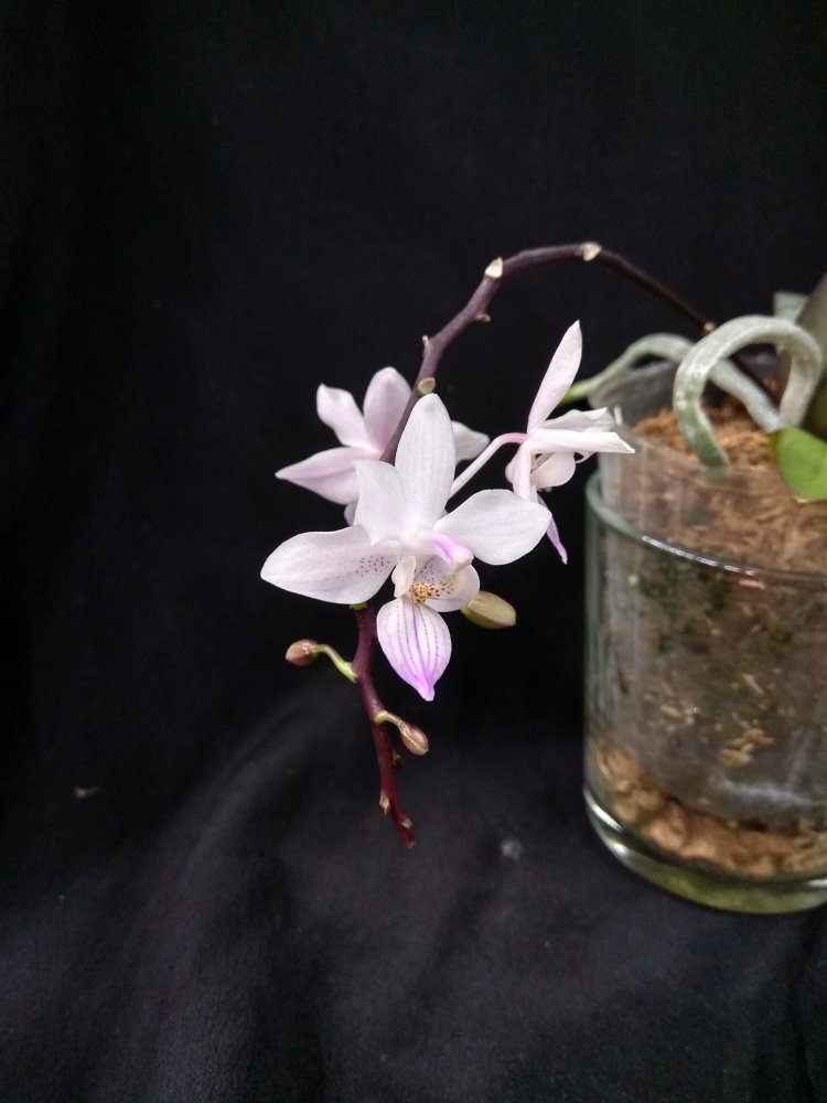 - и чрезвычайно грациозный Phal. Germain Vincent var. blue x lueddemanniana var. coerulea очень старательно надувает бутон и одновременно растит 4-ый цветонос..