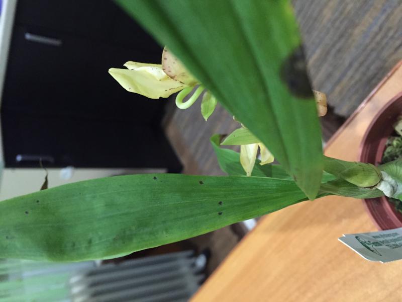 Здравствуйте девочки и мальчики!! Получила свой первый катасетум, пятна на листьях и нашла живность в виде палочек и кругленьких жучков!!! Нуждаюсь в ваших советах!!