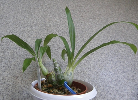 Sybyl, спасибо! :girl_wink:По поводу крайней правой - это Catasetum fimbriatum olden Horizon, насколько я понимаю - маленький. Посажен так же, как и кловезии, просто фотка общая, поэтому не разобрать. Он пока и поится, и кормится, на момент приезда бульбочка только начинала наливаться, быстро это у них происходит! За основанием бульб слежу, начиталась ужасов... Вчера еще раз статью Фредди перечитала, они пишет про сокращение полива в 2 раза к ноябрю, так что еще немножко пополиваю, пожалуй, листья-то зеленые сверху. Просто остальные морковки еще четко в стадии роста , а я на них первый год, как подсела, с уходом на покой и КАК это выглядит, еще сама не сталкивалась. То есть теоретически знания есть, а практики нету...