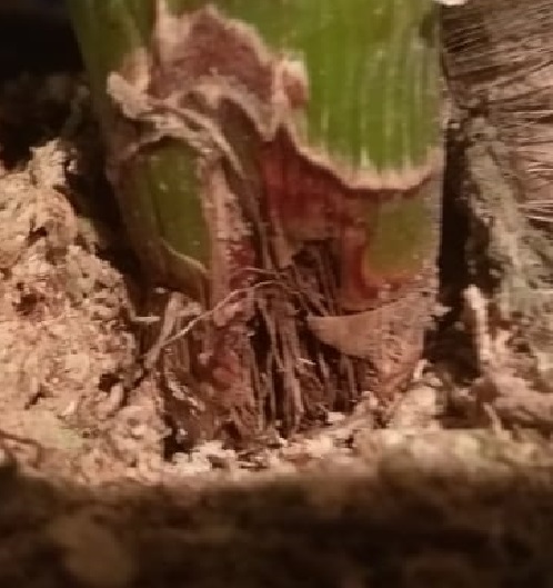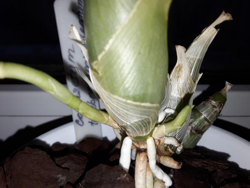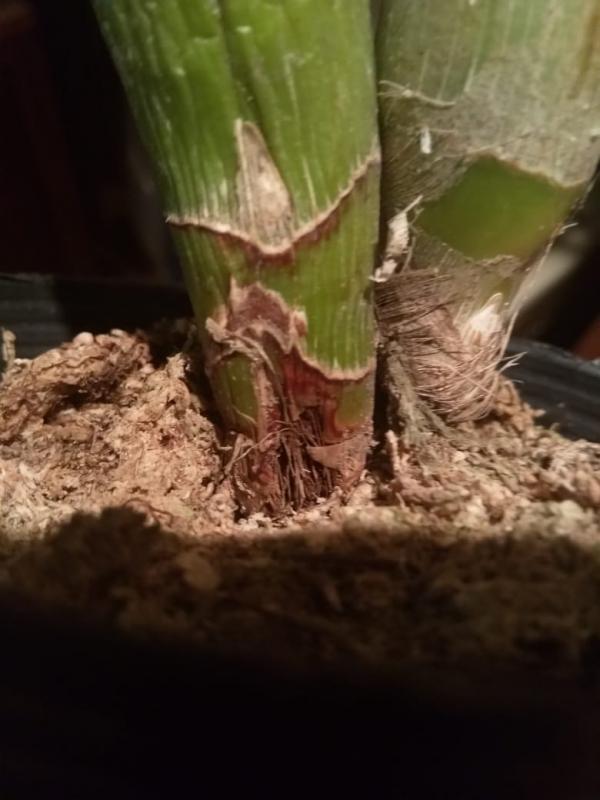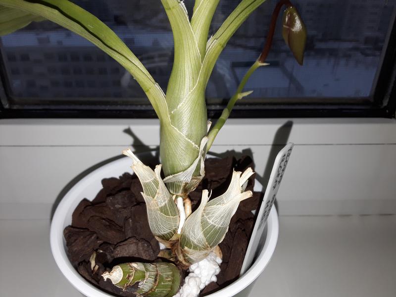 Сидит,как и приехала во мху.Это резко началось,сначала резко пожелтело два листа нижних причем ,как бы с одного бока,потом вверху начало скукоживаться, где листы крепятся. Ну подумав я подумала,что могла засушить я полила,ситуация немного улучшилась, потом опять еще лист, и это совпало с холодом, я подумала может это переохладилась корневая,я полила прям горячей водой ,прогрела корни дала стечь и под лампу светодиодную обычную, стоит и вроде,как лучше. Еще думала клещ,тоже обработала. Другая там же стояла, уход одинаковый и ей хоть бы хны,вторая фредерикара,они считаются более капризными.