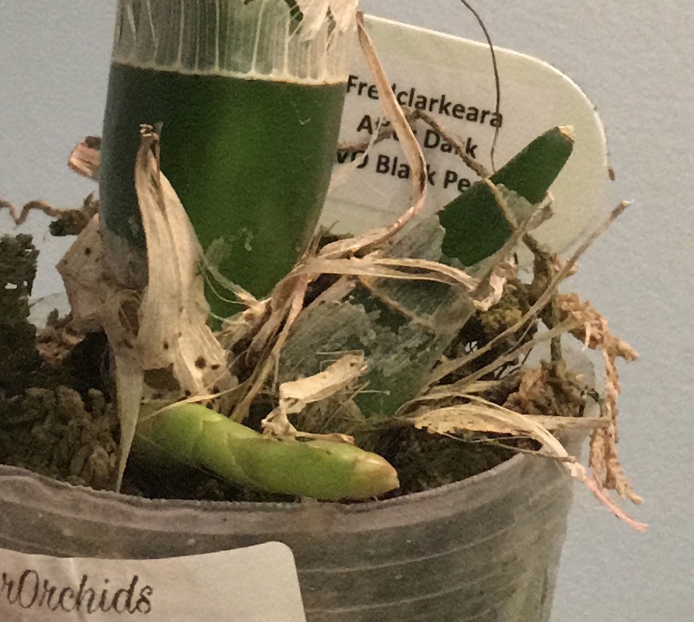 Очень прошу помочь мне понять, что делать с фредкларкеарой: у неё нет листьев, зато есть новый рост и цветонос.