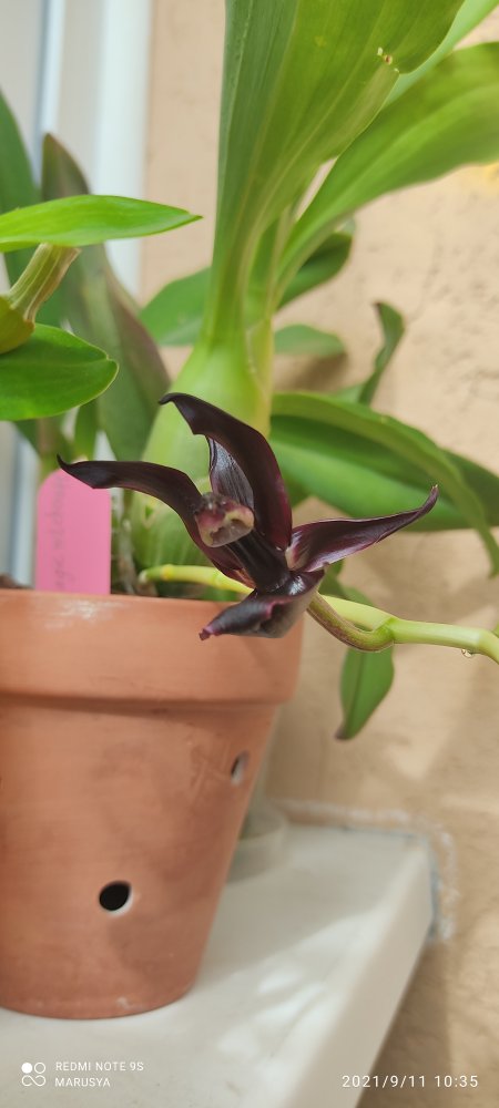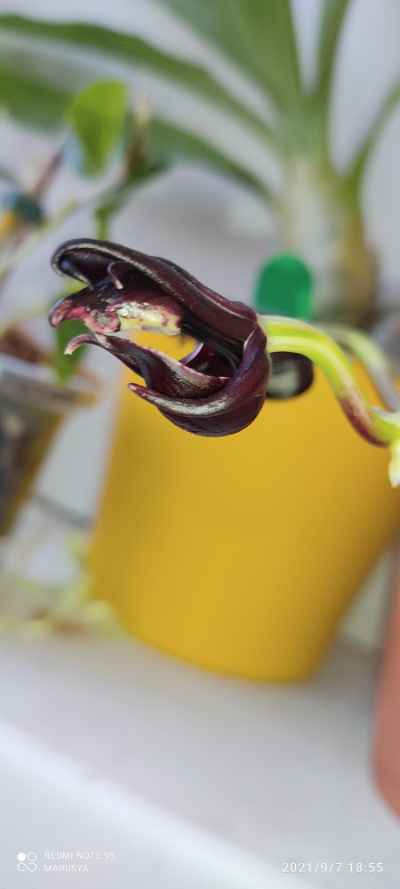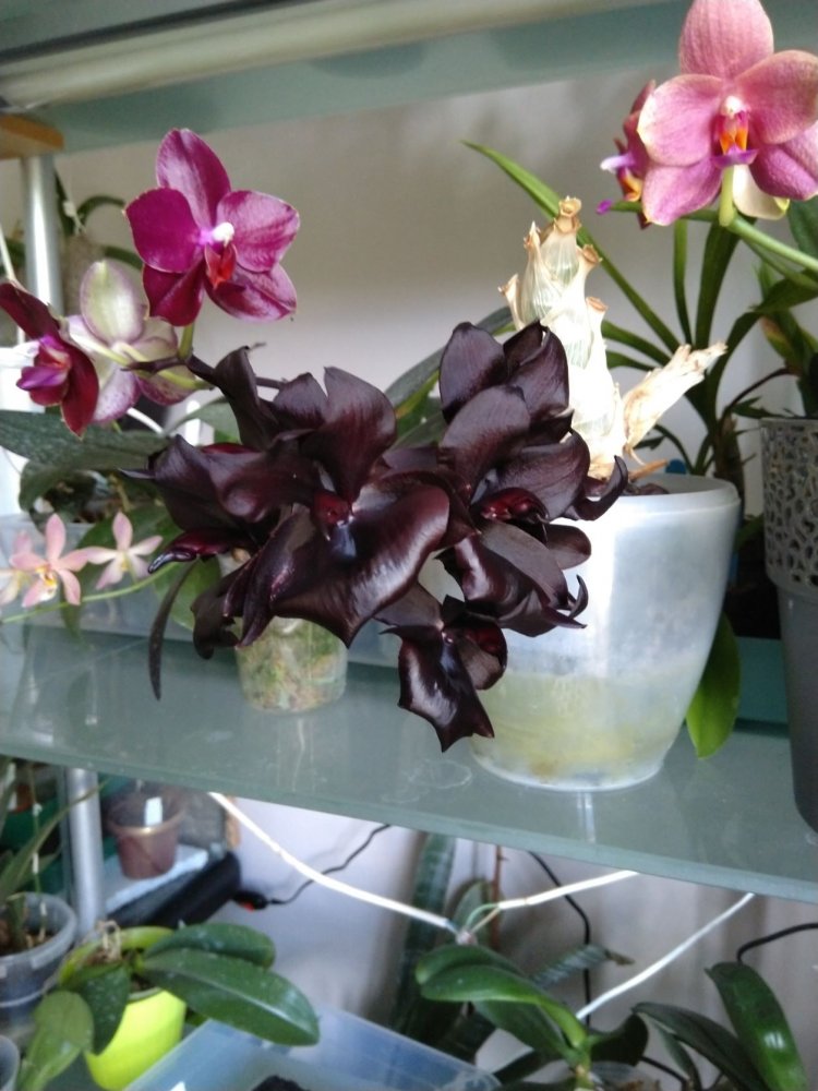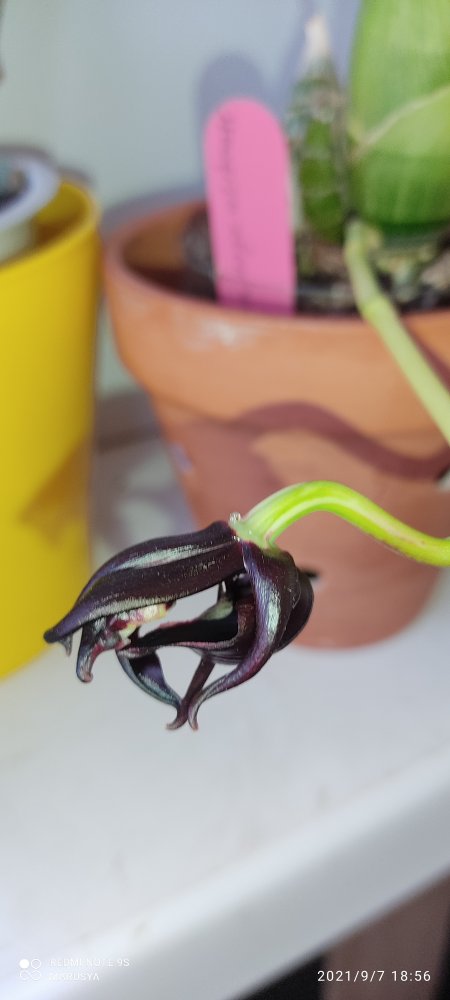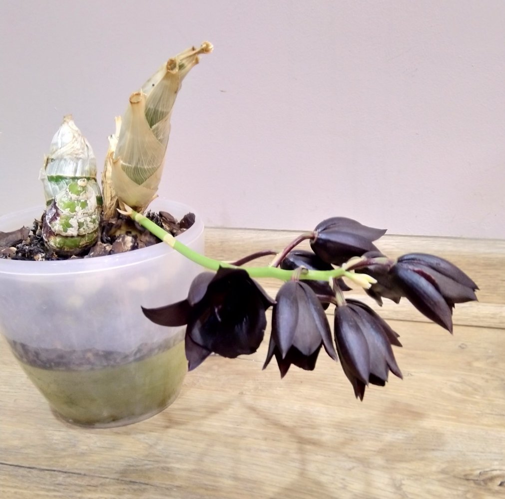 Подскажите, пожалуйста, владельцы fdk after dark Black Pearl, когда она у вас цветет? Я такую бульбу шикарную раскормила, а она что-то сидит и ни гугу. Или она цветет после скидывания листьев? Откуда цветоносы ждать, снизу, сверху?