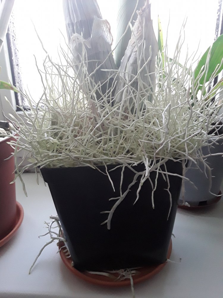 А пересадили из-за величины растения? Я бы не пересаживала до весны уже... Мне казалось, пока она в активном росте. ее не стоит трогать)Вчера пересаживала свою кловезию Rebecca Northon, давно пора было. Только вот пришлось оставить мох внтури( так она обросла корнями,что не подобраться. Взяла горшок побольше и засыпала вокруг корую. Бульбочка справа цвела в апреле.