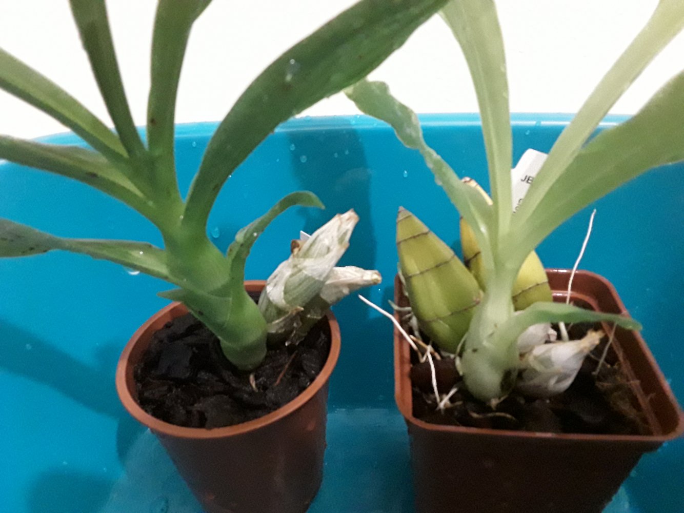 Поделюсь несколькими секретами выращивания морковок, наработанными из своего личного опыта. Сейчас в нашем регионе максимально активно идет "наедание" бульб у морковок, рост корней и закладка цветочных почек. Если в этот период допустить ряд ошибок в уходе и содержании, растения к периоду покоя останутся недоразвитыми и могут не заложить цветочные почки. Поэтому предлагаю свои манипуляции, помогающие всего этого избежать и использовать практически последний месяц отличного солнечного лета для извлечения макисмальной пользы для растения. Итак, к этому моменту правильно развивающиеся морковки должны уже "оформить" бульбу и начать ее накачивать водой и питательными веществами впрок. Ну и отрастить много новых корней и заложить цветочные почки. Для того, чтобы бульбы быстро набирали массу, необходим очень обильный полив без просушек и подкормки удобрениями. Обратите внимание, что удобрения на основе азота, в том числе органические, сейчас не нужны. Переходите на минеральные с преобладанием фосфора и калия. Очень хороши подкормки Цитовитом (или Аквамиксом) на основе комплекса микроэлементов. Раз в неделю морковкам нужно устраивать душ водой комнатной температуры (из под крана) вместе с листьями! на несколько минут. Прямо ставить под душ и лить. Дальше просто дать обсохнуть и ставить на место. Следующий полив сделать подкормки - корневые и по листьям (предварительнт полить просто водой и смочить листья, чтобы ничего не сжечь). Следующий полив - просто водой, дальше - опять душ. И так весь месяц. За это время морковки окончательно сформируются, заложат цветочные почки и нарастят массу корней. Таким образом примерно в сентябре они уже начнут либо цвести, либо готовиться к периоду покоя. Важно: по возможности содержать их сейчас на прямом солнечном свете без притенки целый день. Солнечный южный подоконник идеально подойдет. Не бойтесь ожогов, их не будет. Если света будет недостаточно, все вышеописанные процедуры не дадут вау-эффекта. И еще момент - все мои советы подойдут для растений, которые выращиваются в одной коре без мха вообще. У кого субстраты влагоемкие или вообще один мох - такие мероприятия могут привести к загниванию. Ниже на первом фото будут молодые растения, реанимашки, а на втором - взрослые, давно домашние растения. Обратите внимание, какие бульбы они уже наели. Потому что такой уход у меня для них с июня. Да, еще. Когда бульбы начинают "расти вширь", необходимо поочередно убирать нижние кроющие листья, а в дальнейшем следуюшие надрывать по центральной жилке. Это поможет бульбам быстрее набрать массу. А кроющие зачастую не отмирают вовремя и препятствуют нормальному росту, "стягивая" бульбы по типу ремня. Стоит их убрать/надорвать, бульба быстро выравнивается в ширину.