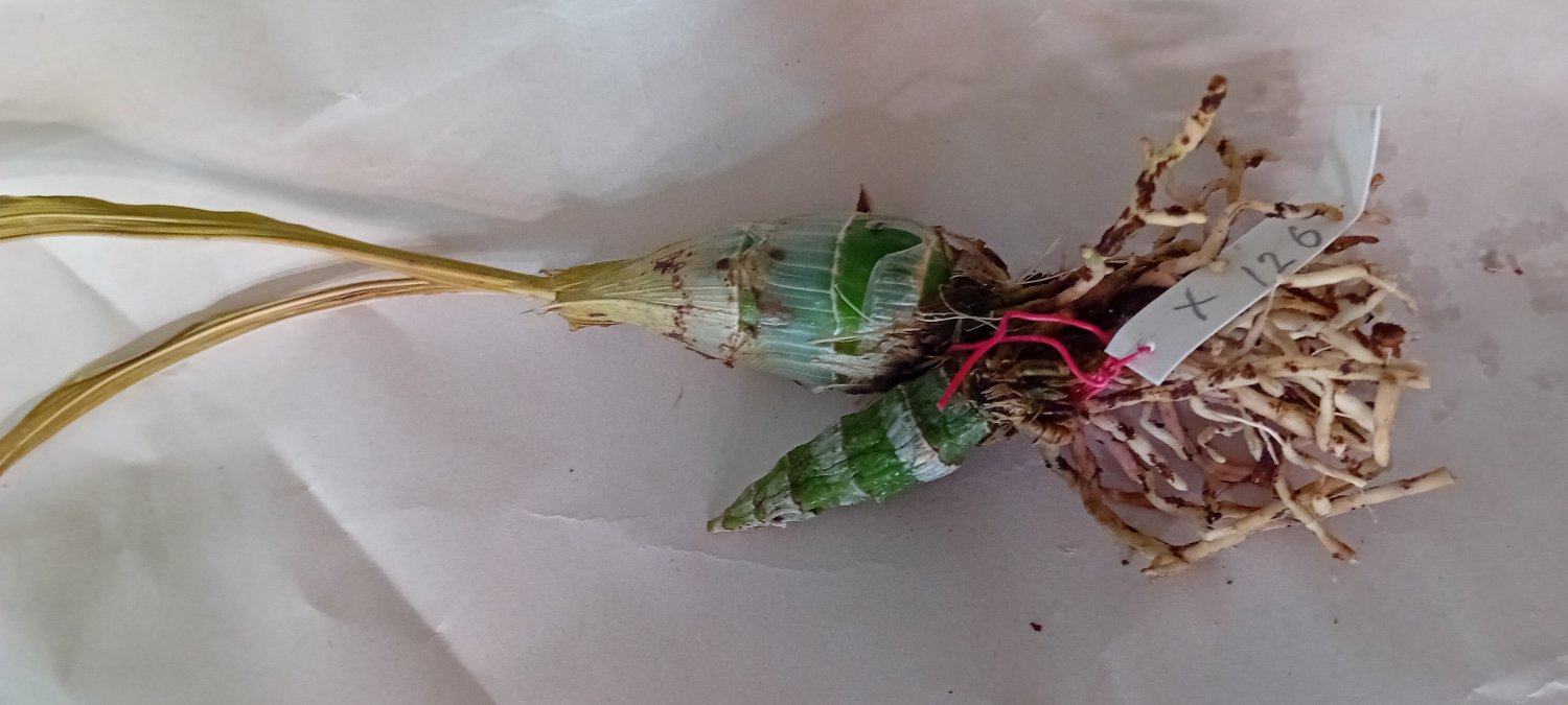 Цветение текущего года, осень, за сезон две бульбы, цветёт с той, что сформировалась покрупнее первой, с неё же сейчас растёт третий цветонос.