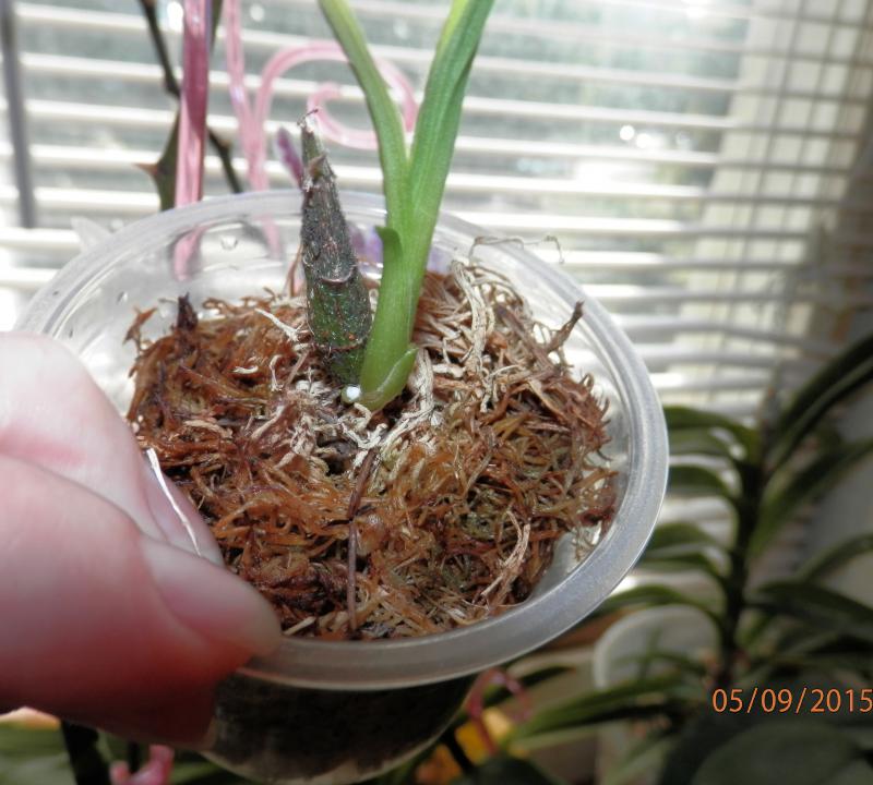 А вот tenubrosum (я его по ботве узнал. Очень она специфическая. Спросил на всякий случай) цветет в начале развития псевдобульбы или в середине. У меня так. июнь-июль.
