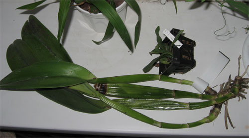 Но она когда пришла, корней живых почти не было, я ее сразу засунула в горшок с корой, намертво привязала проволокой к палочкам и поливала спринцовкой примерно раз в неделю. По ней у меня сложилось мнение, что она вообще не заметила переезда.