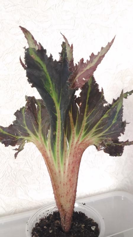 Помогите, пожалуйста, опознать сорт бегонии. Это листик от растения. Уже дал корешки.Посмотреть вложение 185098