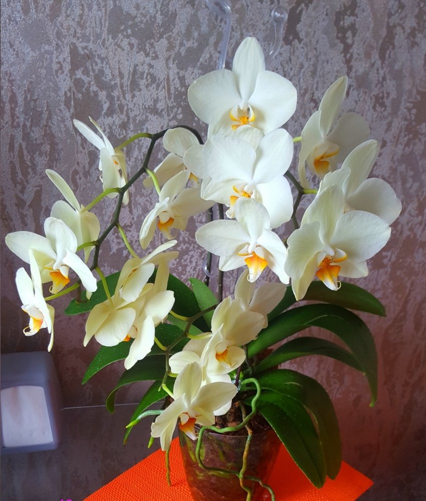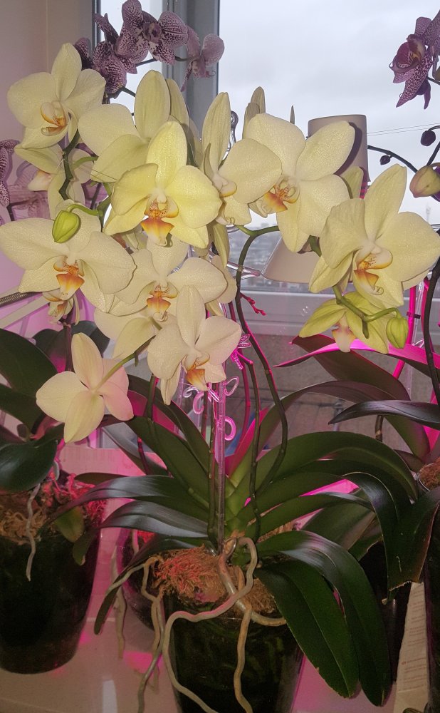 @Фуран, спасибо Вам. Мой красавчик не ароматит. Но похож невероятно!!! Поскольку это подарок, то где приобретался - не знаю (но не в сетевом магазине точно). Скорее из чьей-то коллекции. За эти годы раза три переваливала с увеличением размера горшка, грунт "не вытряхивала". В прошлом году, приехав с отдыха, обнаружила желтеющую шею, решила посмотреть...Разобрала по-варварски, с корнями было всё в порядке - наверное скучал без хозяйки, позавидовал её поездке в Крым, тоже решил подзагореть, привлечь к себе внимание...Ну, раз распотрошила богатыря, приняла решение омолодить - громадное растение с шестью прекрасными(к этому времени отцветшими)цветоносами разрезала в соотношении 2:3, посадила практически на воздушные корни(согласна, что у орхидей нет априори воздушных), т.е на не устремляющихся в грунт. Оставила один цветонос, на котором сейчас растёт детка. Цветёт с двух новых цветоносов.