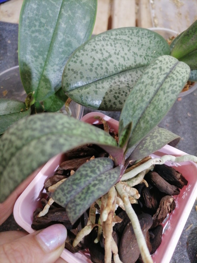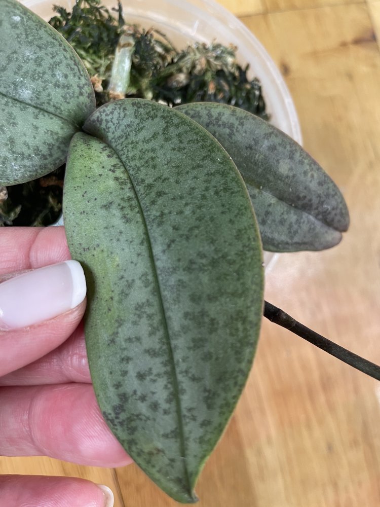 Форма листа может меняться из-за изменений условий. Как и окраска листа. Поэтому без цветения не вариант узнать, что это за фаленопсис. По листьям вообще не вариант узнавать сорт.К сожалению, не то. Форма листа другая и гладкий, поблескивает. А изнанка у Вашего бордовая?