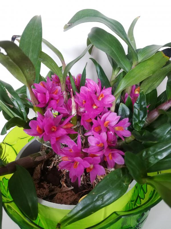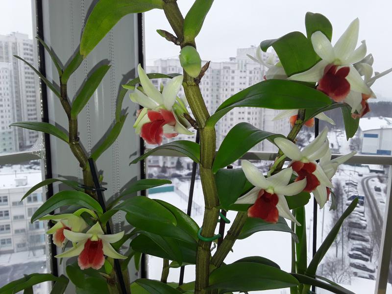 СТД, расскажу о своем опыте с этим дендром и поделюсь своими выводами по уходу и содержанию. Он листопадный, после полного вызревания бульбы на новом росте листья потихоньку начинают желтеть и опадать. Одновременно с ростом бульбы, формируются цветоносы в пазухах листьев. Чем взрослее, крупнее растение, тем их больше. В каждой пазухе может появляться до 4 бутонов одновременно. Бутоны также могут появляться и на старых безлистных бульбах. Периода покоя нет. В хороших условиях будет расти и цвести круглый год. Цветение очень долгое. И обильность цветения никак на росте не сказывается (но потребуется больше полива, подкормки, света). Поэтому все просто - если растет в теплом месте, получает круглый год много света - растет очень быстро и охотно цветет. Расти может, кстати, даже на прямом солнце. В такой период поливать и подкармливать можно от души. Но субстрат замокать и долго стоять влажным не должен. В этом плане можно ориентироваться на каттлеи. Дендр достаточно теплолюбивый, холодные сквозняки не любит. Прохладная зимовка ему не нужна. Если условия содержания, в которых он постоянно растет, предполагают холодное содержание - он спокойно и это переживет. Только расти в этот период не будет. Поэтому и полив обильный, и подкормки не потребуются. Но, повторюсь, это не его обязательное требование, ему совершенно не нужно. Просто если так складываются обстоятельтсва, он подстроится под них. Как итог - дендр очень простой в уходе и щедрый на цветение, никакие бубны не нужны. Пока не взрослый и до конца не понятен хозяину, могут возникать проблемы. Но со временем, как только вырастет в большое взрослое растение, будет расти как сорняк и приспособится под любые условия, при этом еще и цвести бесконечно будет. У взрослого растения, кстати, бульбы могут вырастать до метра в высоту (и растут очень быстро).