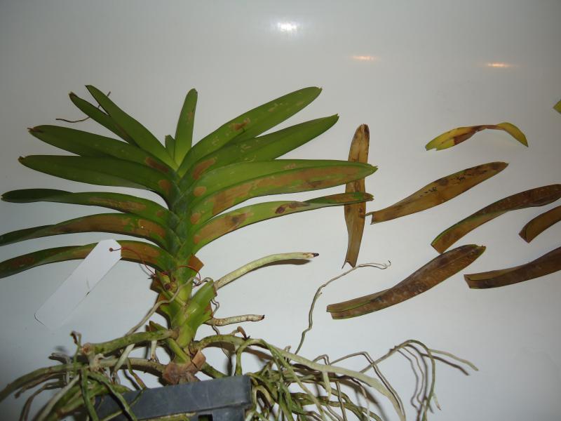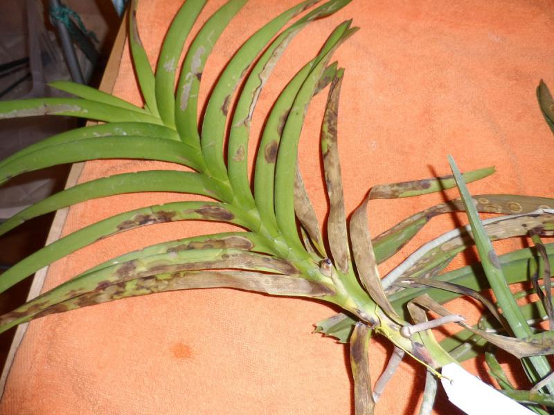 У меня одна ванда тоже в таких пятнах , правда в этот раз они на нижних листьях.