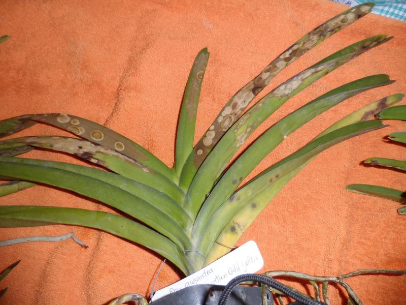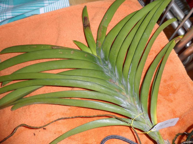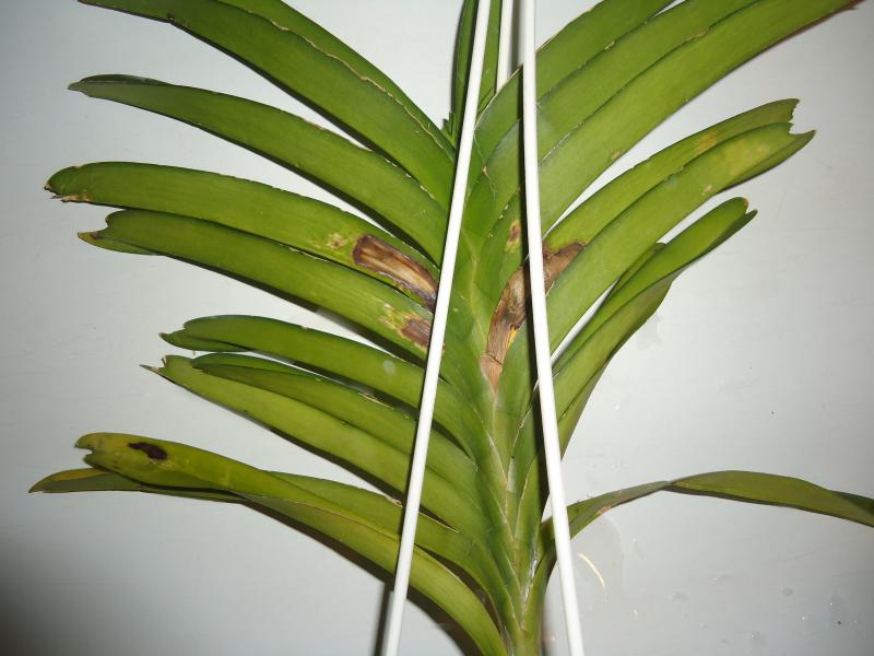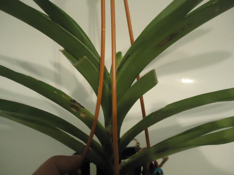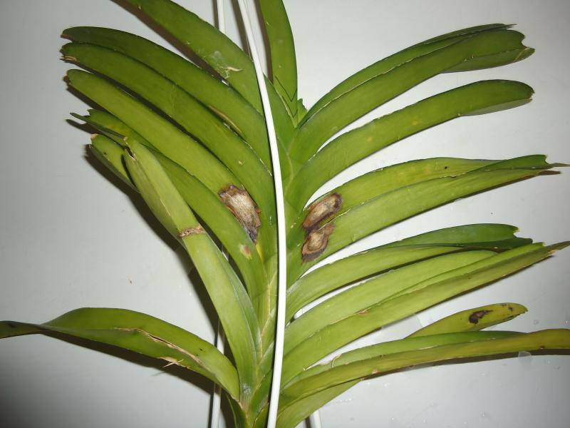 Но они меня не особо беспокоят, если кто помнит мы получали ванды с такими пятнами от Мэйджика. На некоторых я удаляла лист до живой ткани. А одну оставила, у нее такие листья были в середине, так вот пятна эти высохли и дальше не пошли , у меня одна висит с такими уже сухими пятнами.