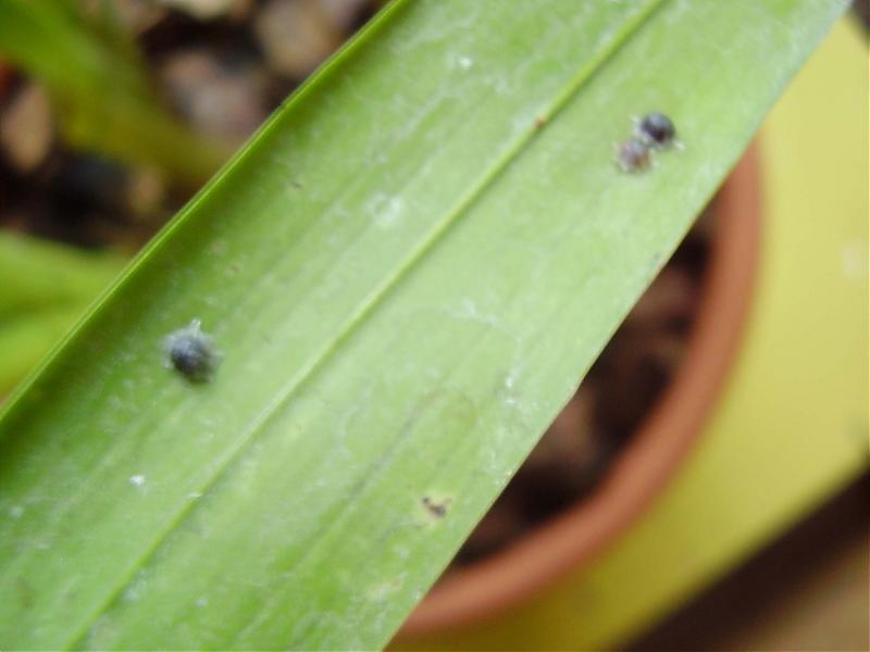 Получила в подарок цимбик и через несколько дней на листьях обнаружилась вот такая прелесть, в общем-то меры приняла, и надеюсь, справилась, но для кругозора, так сказать, что это такое, как звать и насколько опасно, в смысле заражения других орх.