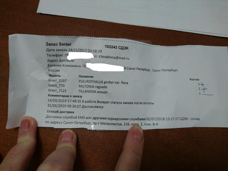 В заказе две целогины - COELOGYNE mayeriana (our former pandurata) - растение с высохшими бульбами и сухими в хруст корнями, молодой рост надломан, листья как бумажные с пятнами. Выхаживать не вижу смысла, отправилось в мусор.