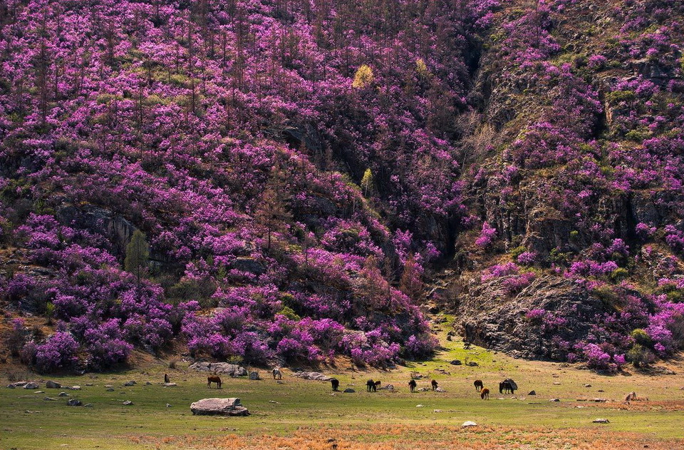 @Цвяточек, это вы ещё цветущий багульник на Саянах не видели... Вот где красота - горы стоят в розово-фиолетовой пене, а под ними Енисей.