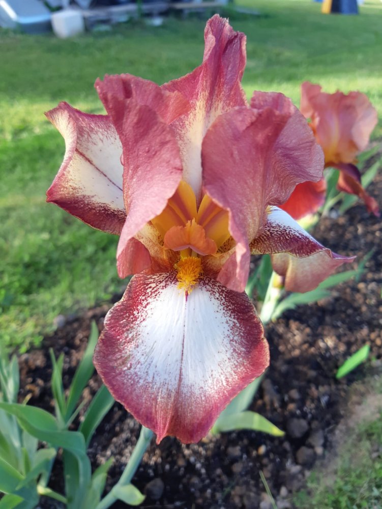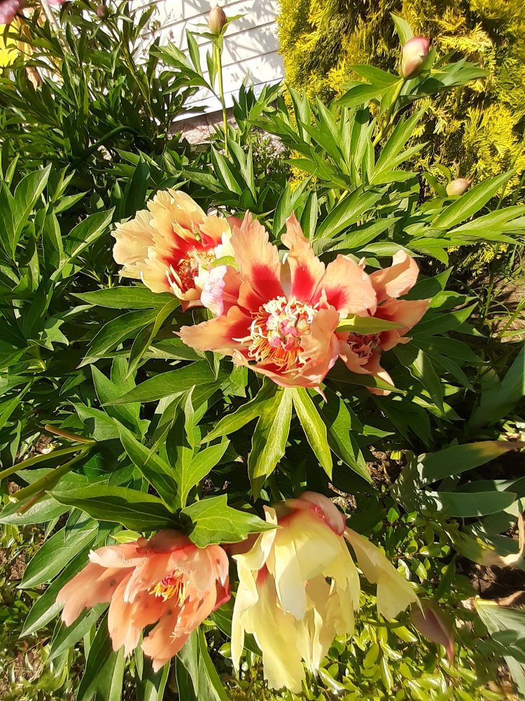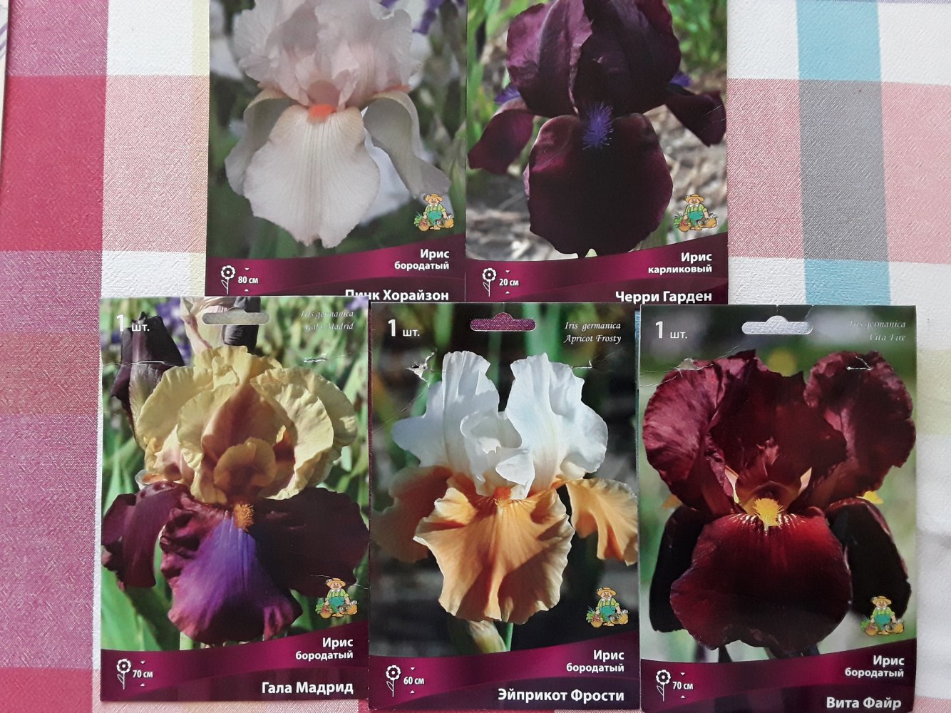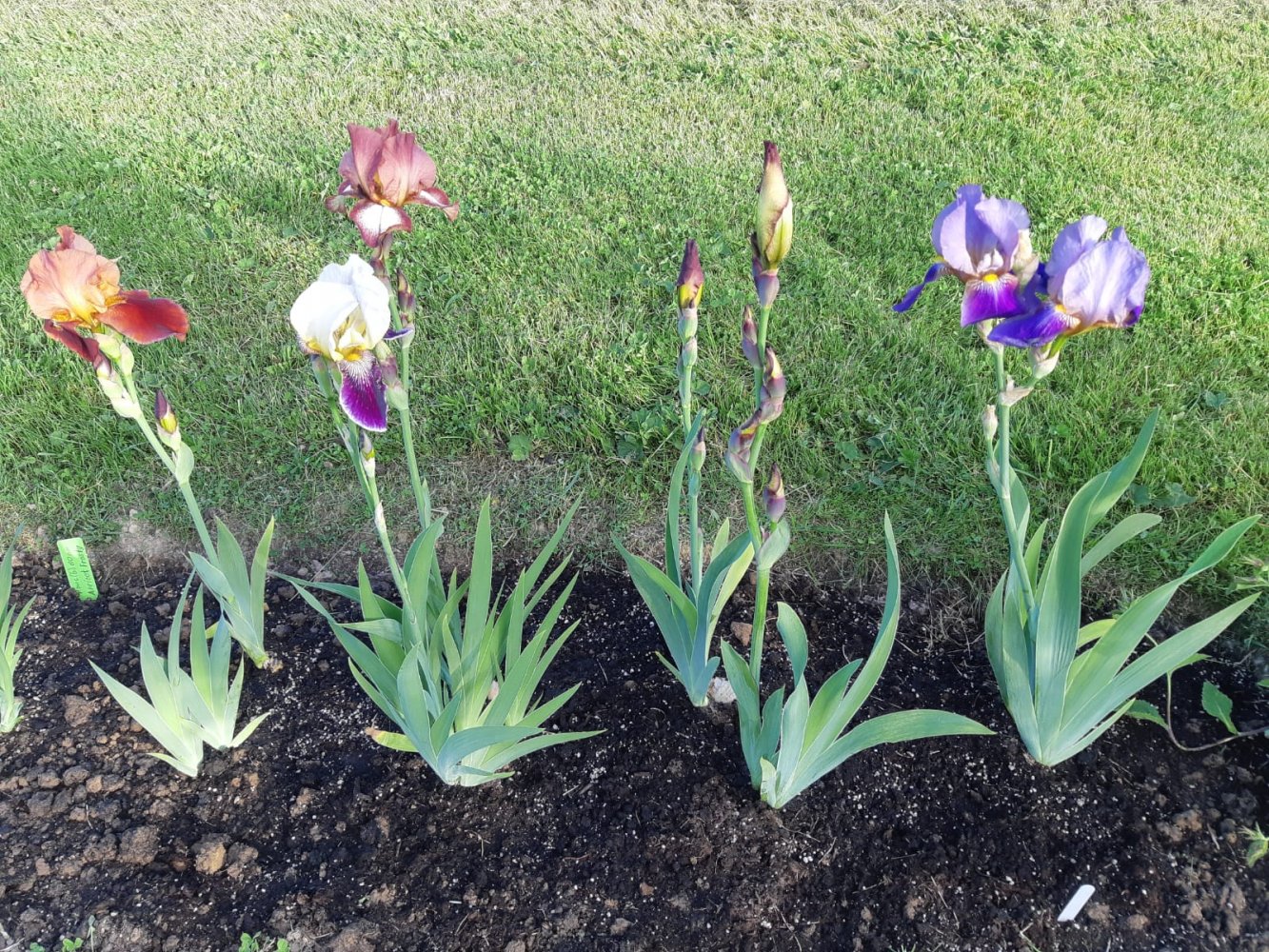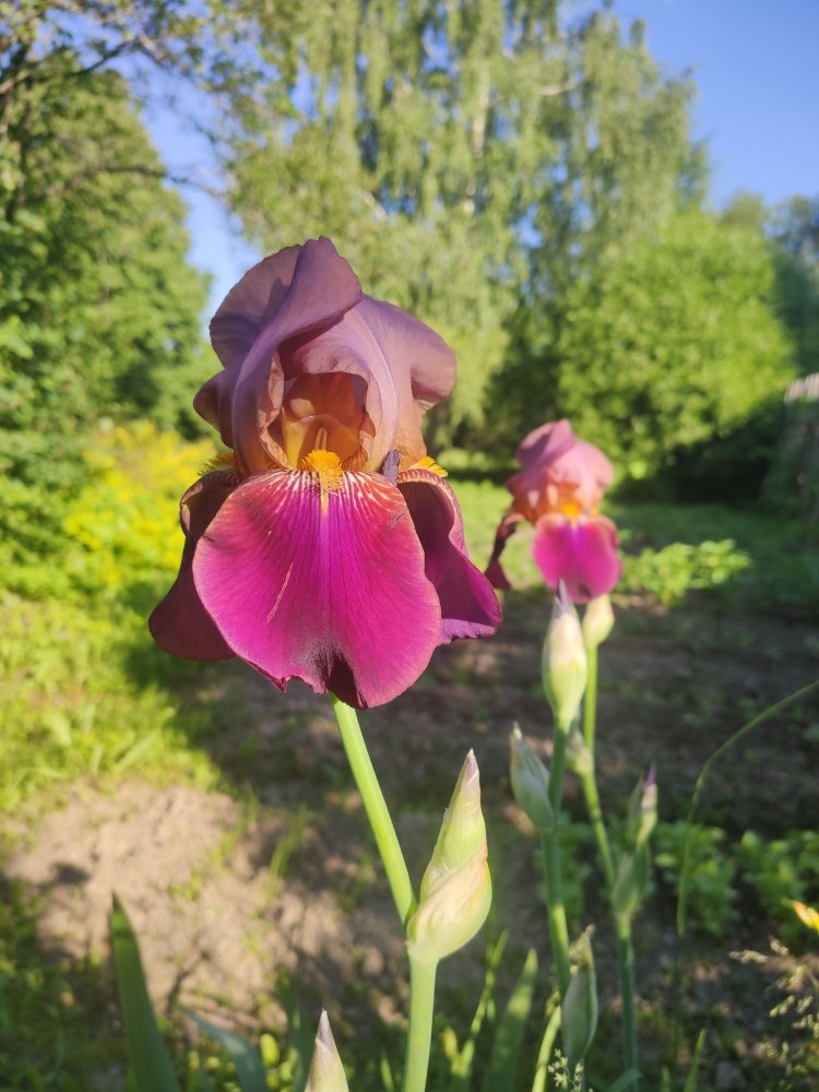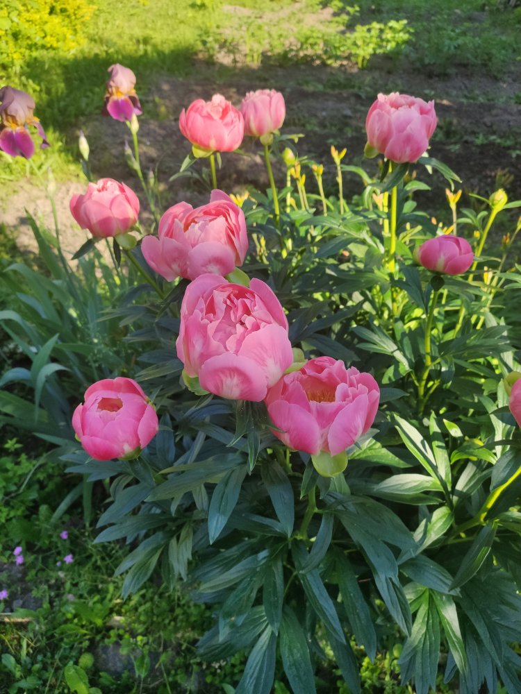 В этом году пионы жесть как поздно зацветут. Мои еще бутонятся, через неделю, наверное, только первый распустится, еще сирень доцветает... Рачцвели ирисы - все пересортом, покупала 2-3 года назад в Оби (от Поиска). Поначалу бутоны вообще все темно-синие вылезли, и первый в сиреневых тонах расцвел. Решила, что все одинаковые будут. Хотя бы все разные, и на том спасибо. Но, конечно, вообще не то, что хотела и покупала. Первое фото того, что покупалось, а дальше что расцвело. Радует, что выращивать их научилась, пробный камень, так сказать....