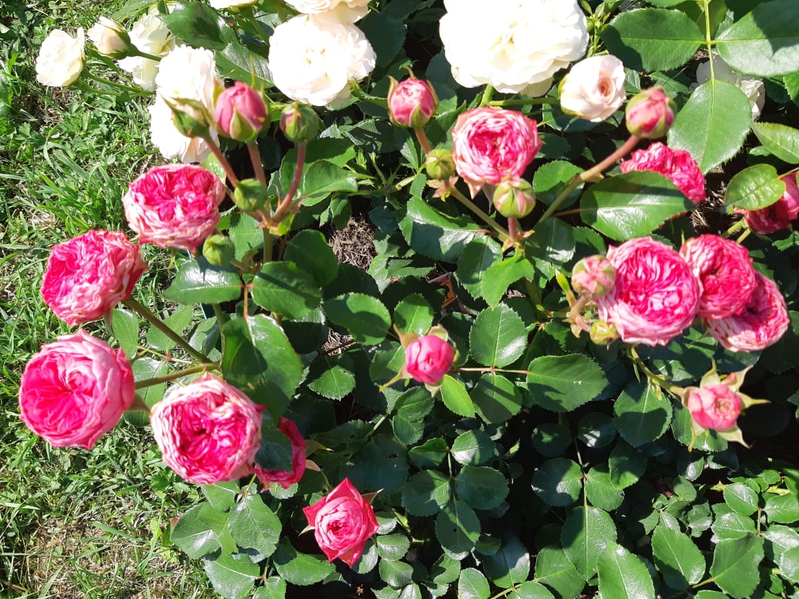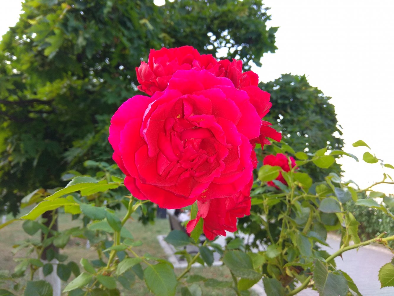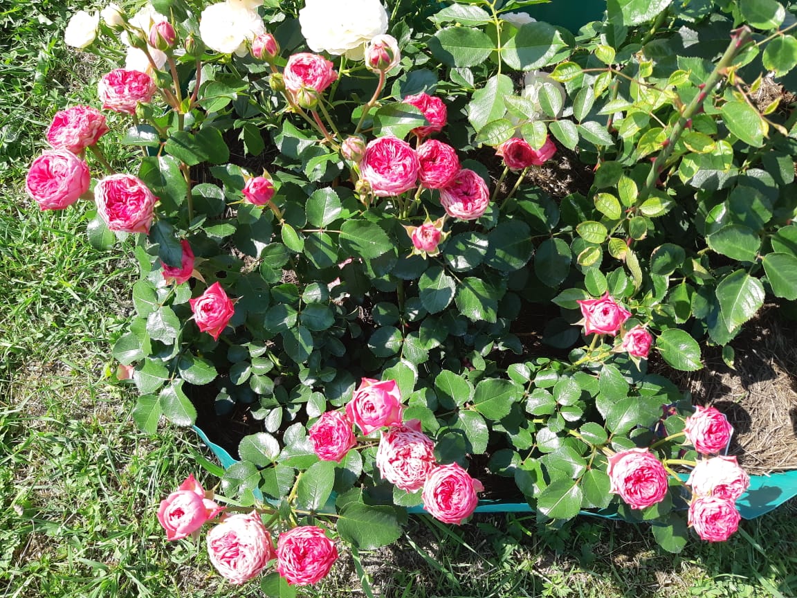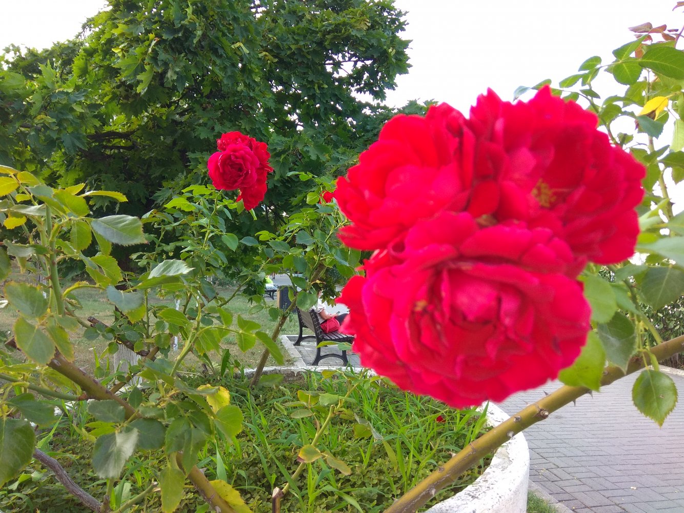 У нас жара- в тени до 35 градусов! На улицах розы засыхают... Но недавно увидела шикарный куст- ни одного засохшего цветка!!! извиняюсь за снимки - было ОЧЕНЬ неудобно фоткать...