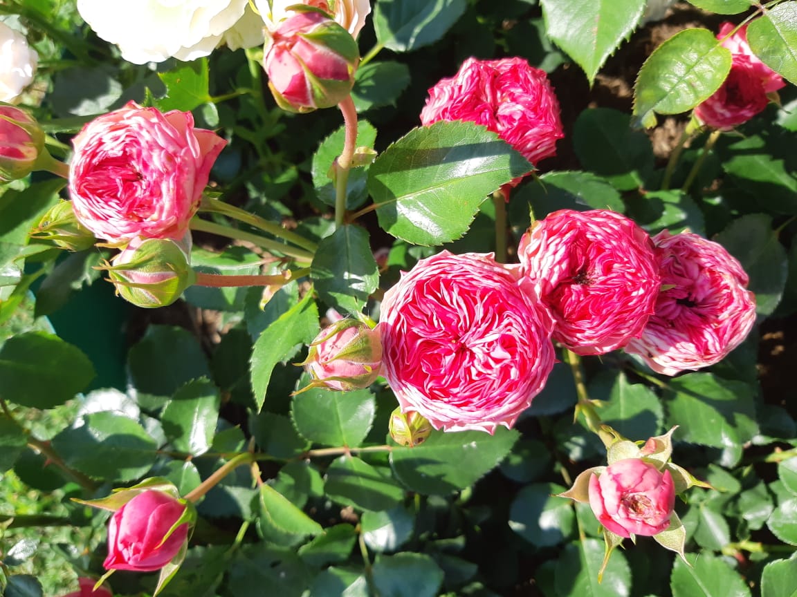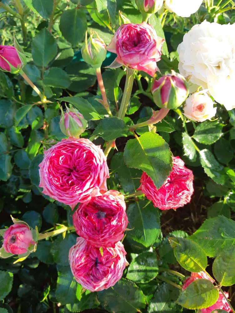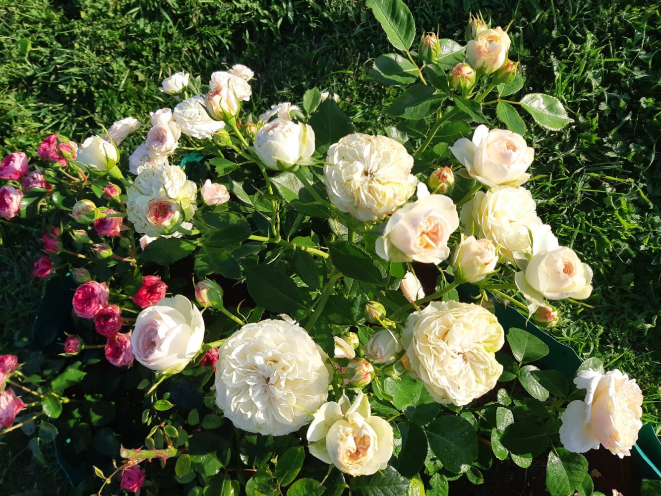 Ух, как же мне понравилась роза Софи Луиза! Сорт новый, 2019 г. Чем так понравилась - быстро растет, очень здоровая, а главное - цветы. Они ярко-фиолетово-фуксиевого цвета, аж фосфорицируют. Эту розу видно даже ночью! Ароматные, но не сильно (был обещан сногсшибательный аромат на весь сад - такого нет, обычный легкий аромат роз). Это лето очень жаркое плюс без дождей. Поливаю, понятное дело. Но роза растет на полностью открытом солнцу участке, при этом цветы не выгорают от слова совсем. И держатся до 3 недель! Посадила рядом два саженца - один при получении был поменьше и похуже, а другой прям большой с отлично развитой корневой. Прижились оба хорошо, но который был сразу отличным, сейчас выдал побег около 120 см. Процвести снего, скорее всего, не сумеет уже, лето заканчивается, но показал свой потенциал. Вобщем, кто ищет здоровую беспроблемную розу с огромными ярчайшими цветами - обратите внимание на этот сорт.