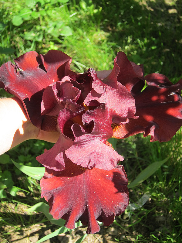 Connection (Шрейнер) Просто огромный цветок. Зачем я его подсадила прямо под ноги пиону -остается загадкой. Теперь мучасюь то ли недоразвитый пион пересадить, пока все равно не цветет, то ли рискнуть и пересадить коннекшен...
