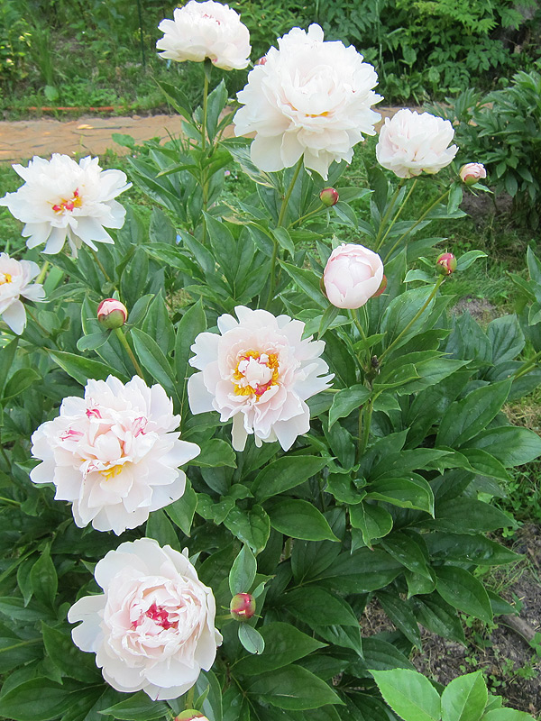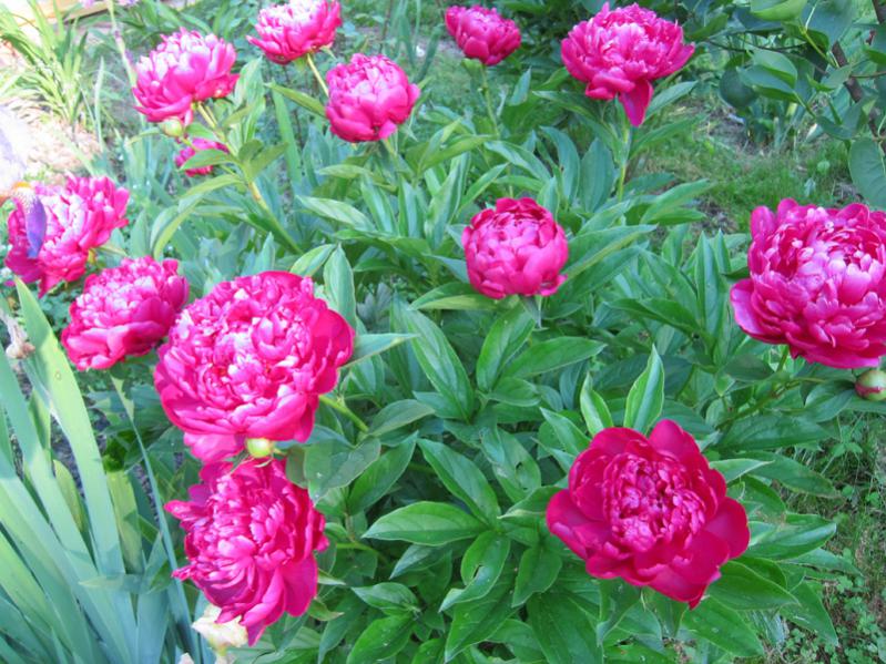 Пионы. Все этикетки потеряны. Ну кроме желтого это Golden Wheel. Цвет настоящий, лимонный. А вот размер подкачал, где-то см 6-7. Может, первое цветение, поэтому? Надеюсь... Все из Китая из нашего заказа. Вот на третий год после ударной дозы прошлогоднего навоза пошли цвести, да еще как!!!