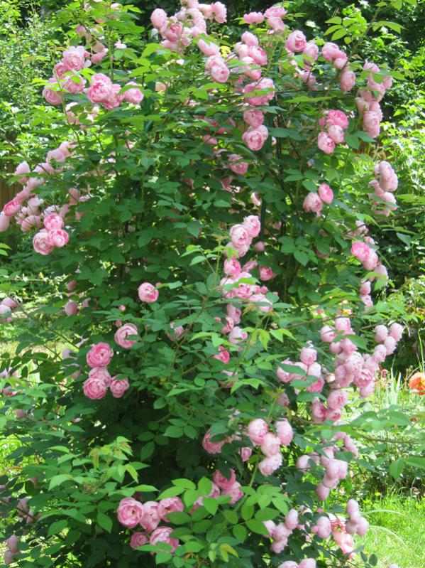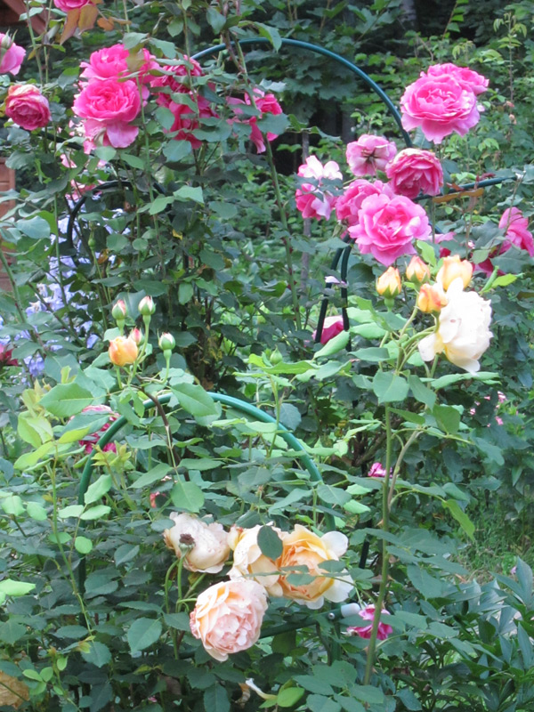 Irochka, Ир спасибо. Вживую все гораздо фееричнее, точнее в массе. Они ж все цветут, вот сейчас около 40 роз цветет а может и больше (не считала). Справедливо одно - с возрастом цветение пышнее и увереннее. Рядом 2 Голден Селебрейшен - первогодка (из последнего Остина) и трехлетка. Трехлетка просто водопад огромных цветов, первогодка - 2 цветочка.