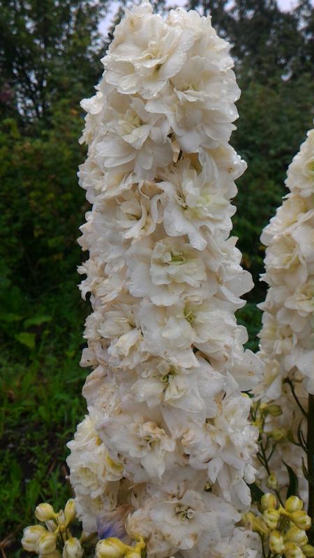 Да, но подпорок не хватает. Взрослые дельфиниумы в диаметре около метра, по 3-4 подпорки ставим. Но у них центр тяжести в районе цветоносов, а они высотой больше 2 метров. Если ещё и их обставить подпорками, то красоты не останется. Правда, рухнули все разом в этот раз. Но с другой стороны, не потратят силы на семена, могут зацвести второй раз в этом году...Нуждаются в высокой подпорке