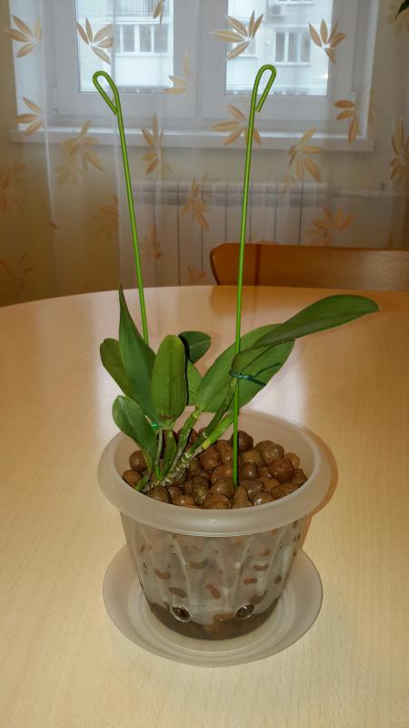 А вообще я каттлеи держу обычно в ведерке из-под мороженного. Все вместе, одним пучком. Вообще без субстрата. Каждое утро поливаю из крана горячей водой их низ. В случае чего, обрабатывать очень удобно, делаю по несколько обработок, кто как требует. А когда у них корни вырастают по 2см и больше, тогда уже сажаю.