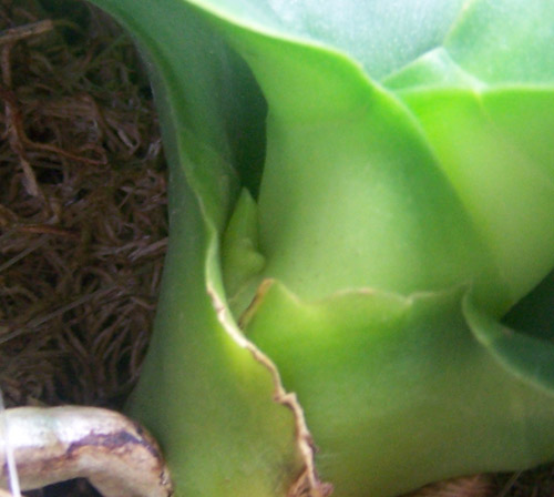 8.PHALAENOPSIS STUARTIANA (получен 23.08.2007 - Italy) вроде прорезается цветонос, через пару дней кончик появится будет точно видно