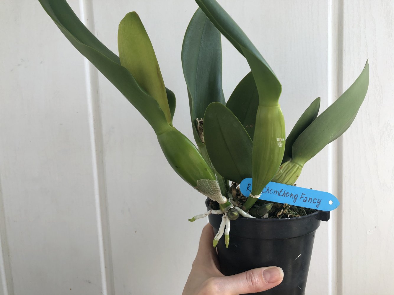 @Бельчик, пришел примерно 2 месяца назад с пересушенными корнями и маленьким цветоносом. Поэтому трогать не стала, требует пересадки после цветения.