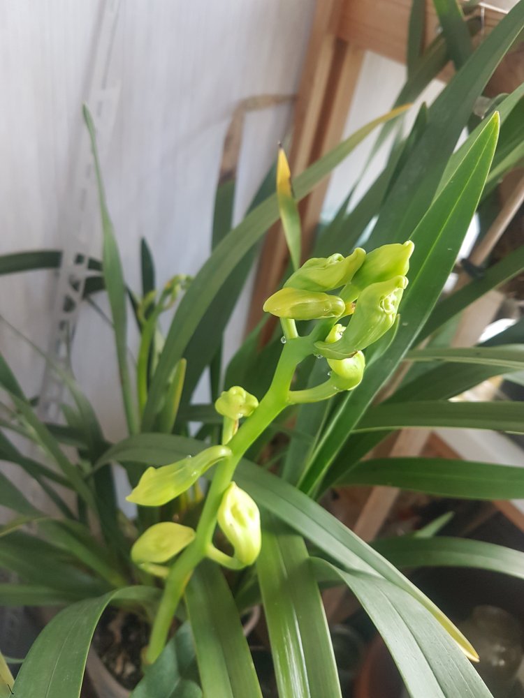 распустится, сделаю фото, конечно, без заднего плана, а сейчас боюсь переставлять или крутить, чтобы не задеть ее в тесноте, не обломать нежные и хрупкие цветоносы-а я это умею!Неторопливый товарищ судя по фото.Темпы роста