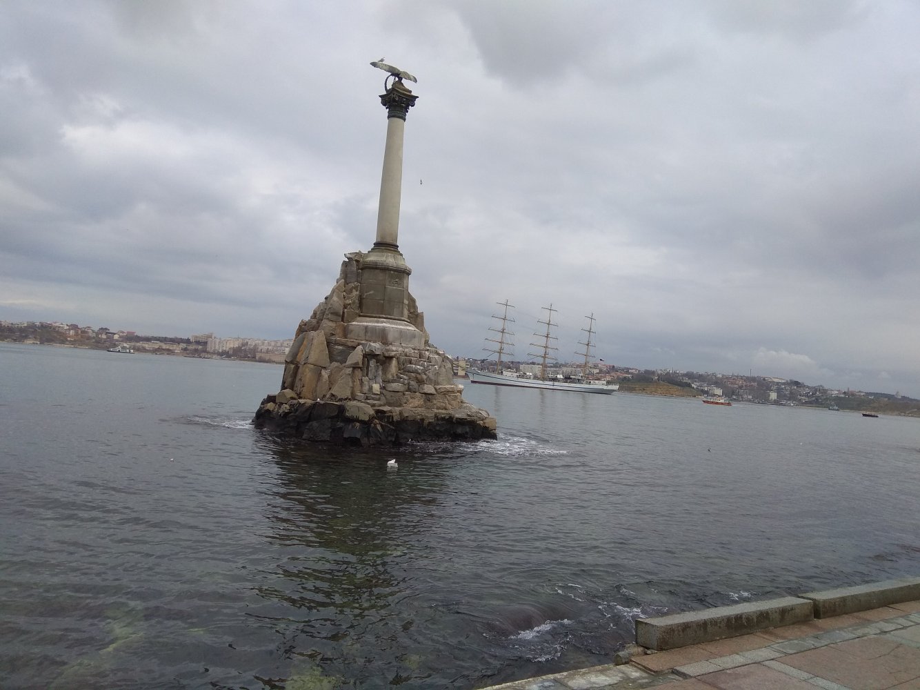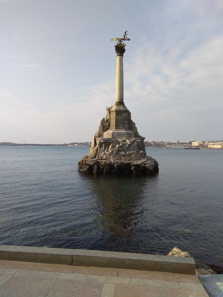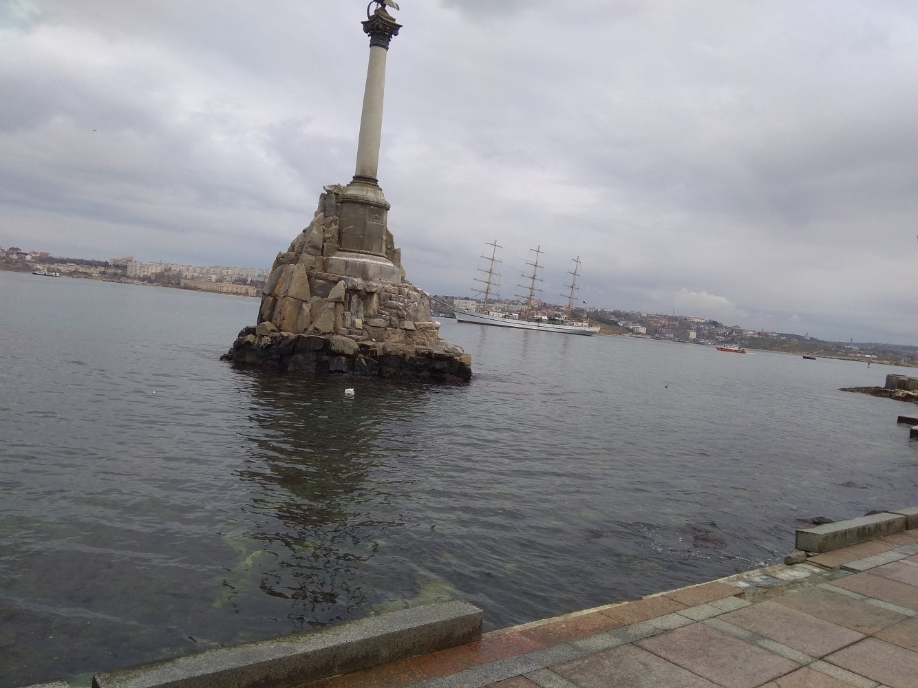 "Дождь покапал и прошел, солнце в целом свете!"... Очень хотелось запечатлеть летящую чайку на фоне Памятника Затопленным Кораблям! Вода чистейшая!