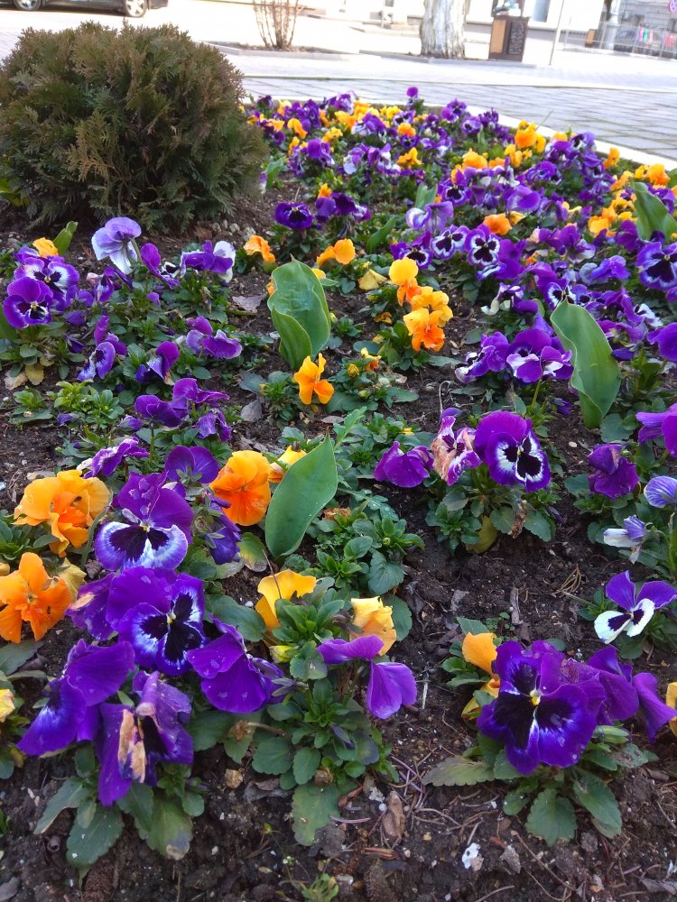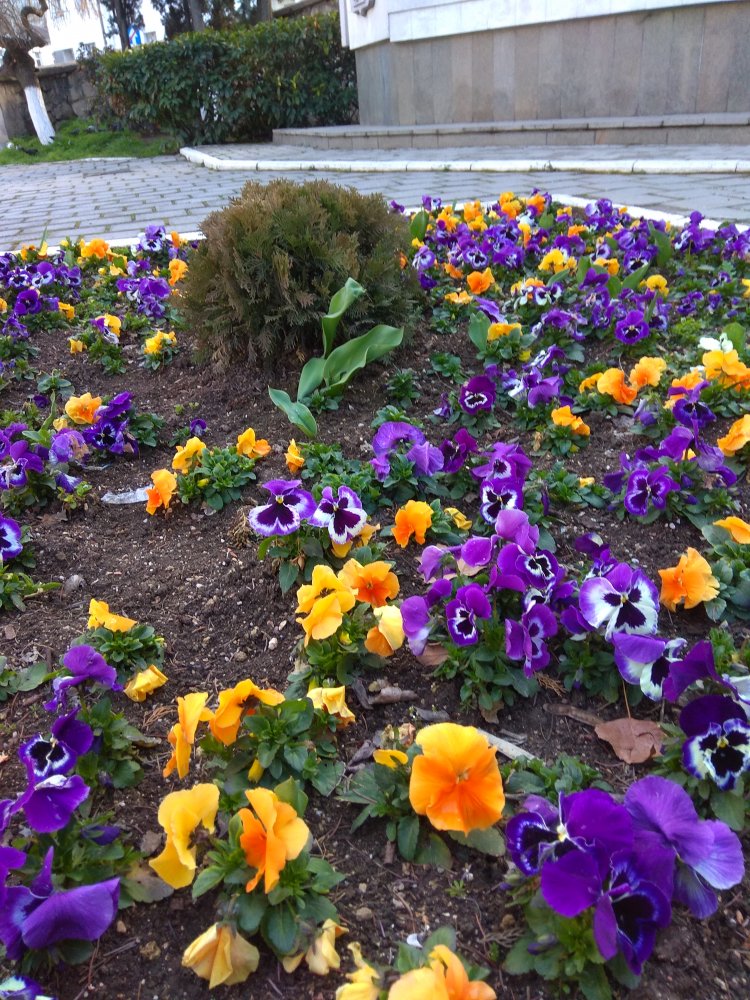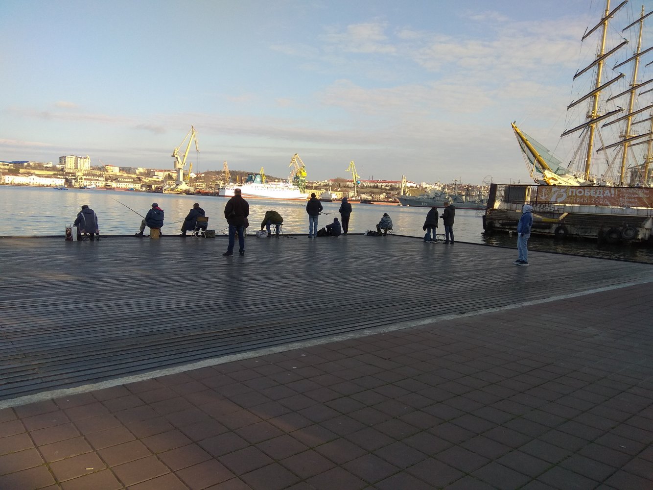Наконец-то нашла клумбу с моими любимыми Анютиными Глазками! На Графской Пристани не только гуляют отдыхающие, но и обосновались рыбаки,- насчитала больше 20 человек! Но, видно, с рыбой не везет,- только одна кошечка сидела рядом в ожидании лакомства...