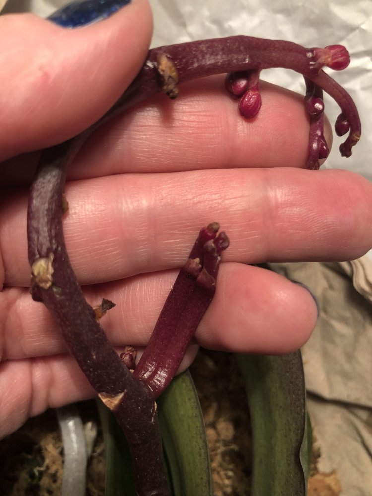 Серебристое - корни, красное загнутое - цветоносы, просто в упаковке пока ехали искривились.