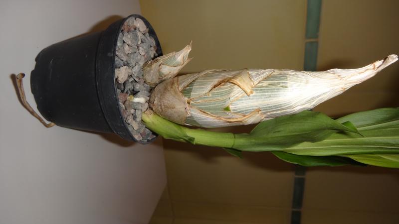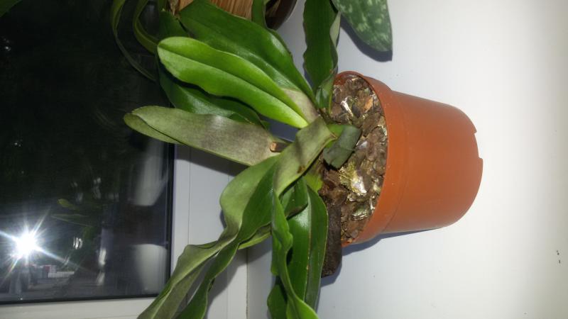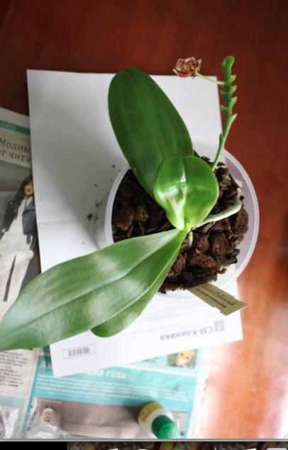 4 Бульбы + новый рост, отличные корни. При детальном осмотре было обнаружено, что на коре плесень и из горшка неприятный запах. Между листьев паутина, На состоянии растения это правда не сказалось.