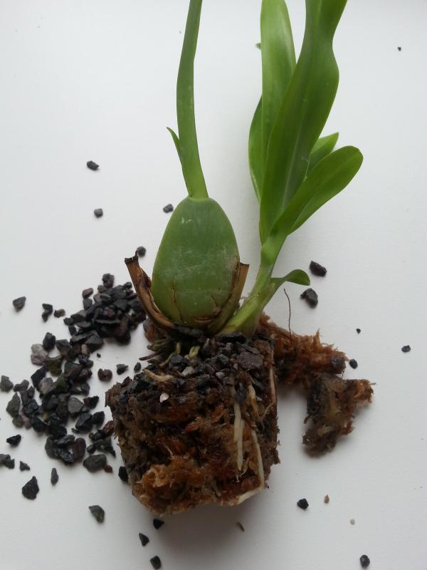 растение не большое, 2 взрослых Бульбы (наибольшая примерно 4 см), новый рост и в низу еще один совсем маленький. Для размера "3 см горшок" на мой взгляд очень даже крупный, целый горшочек корней