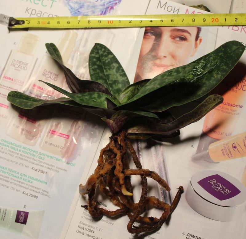 Приехали три хорошие розетки в чуть влажной коре с камушками, одна цвела, много замечательных мохнатых корней, растущие!