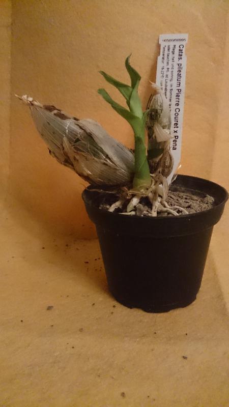 Catasetum pileatum Pierre Couret x pileatum Red Pena HCC AOS - 8 cm pot. Растение пришло в отличном состоянии, горшок 8 см,4 бульбы,одна большая толстенькая бульба 9 см высотой,остальные поменьше, растение проснулось-с новым ростом 6-7 см и растущими корнями. Субстрат мох, сверху гранитная крошка. Растение отличного качества! Всем причастным огромное спасибо!!!