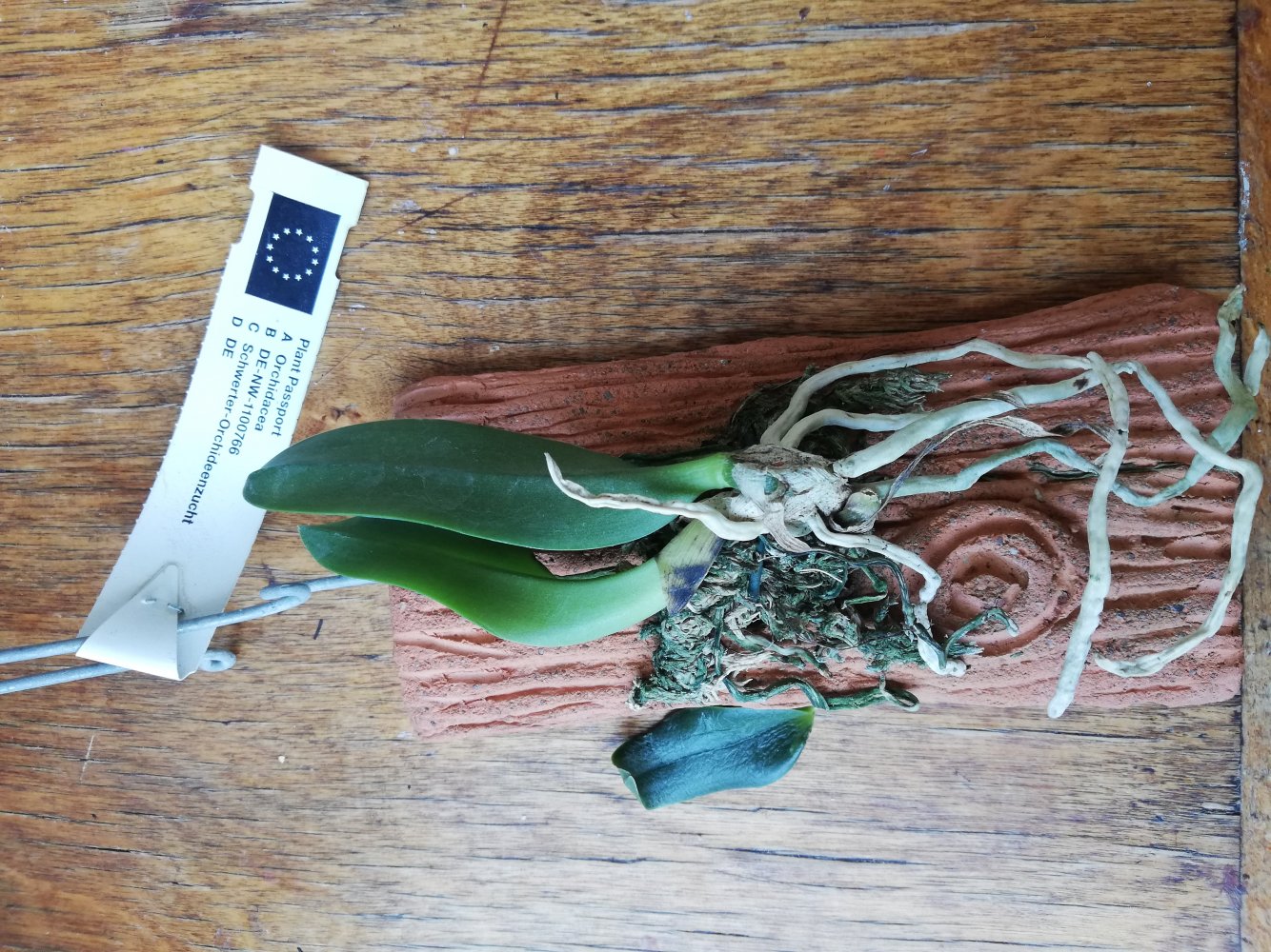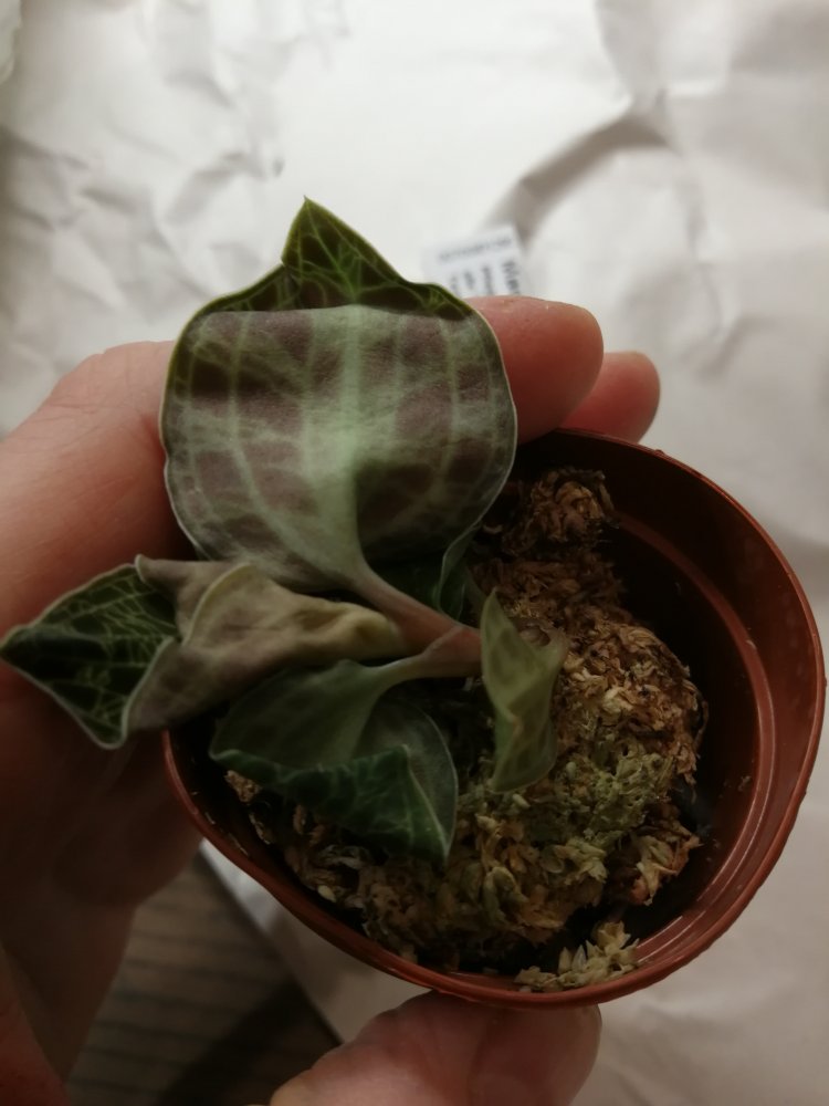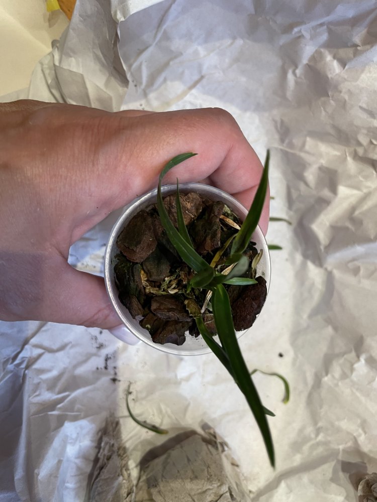 Заказ №197476 от 22.01.22, доставлен 11.05.22, у меня 13.05.22. Paphiopedilum delenatii. В горшочке два замечательных крепыша. При распаковке проявили необыкновенную прыть: поспешили покинуть место обитания. Посему посажены каждый в свой горшочек. 20220513_123415[1].jpg