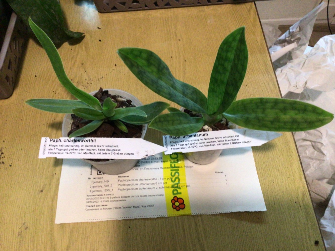 Пришли замечательные Paphiopedilum urbanianum и Paphiopedilum charlesworthii и не пришёл Paphiopedilum wolterianum v. schmidtianum. Первый раз у меня недосыл от Швертера(