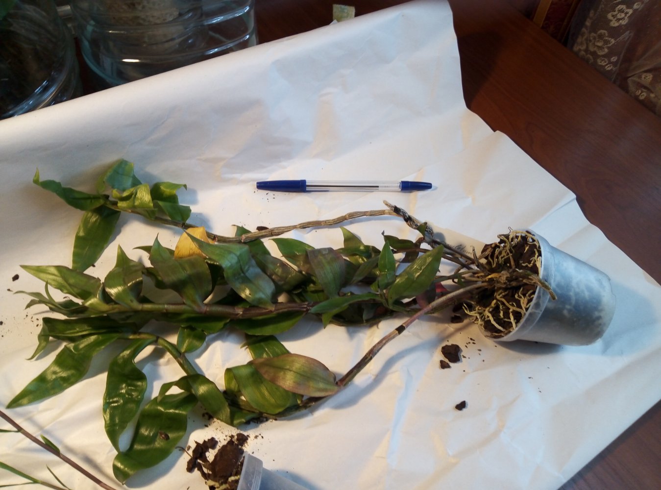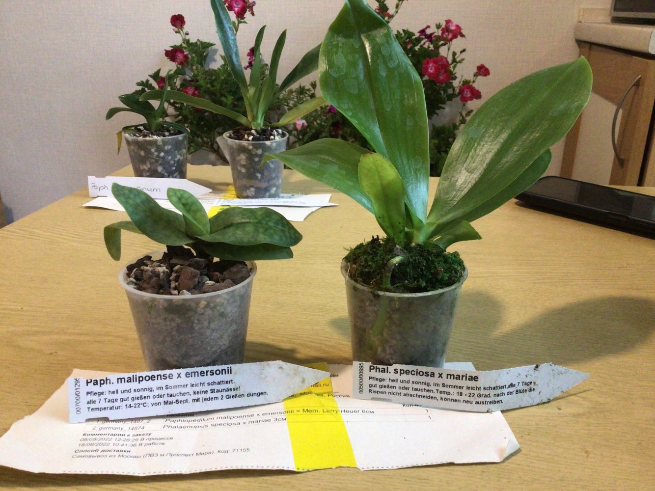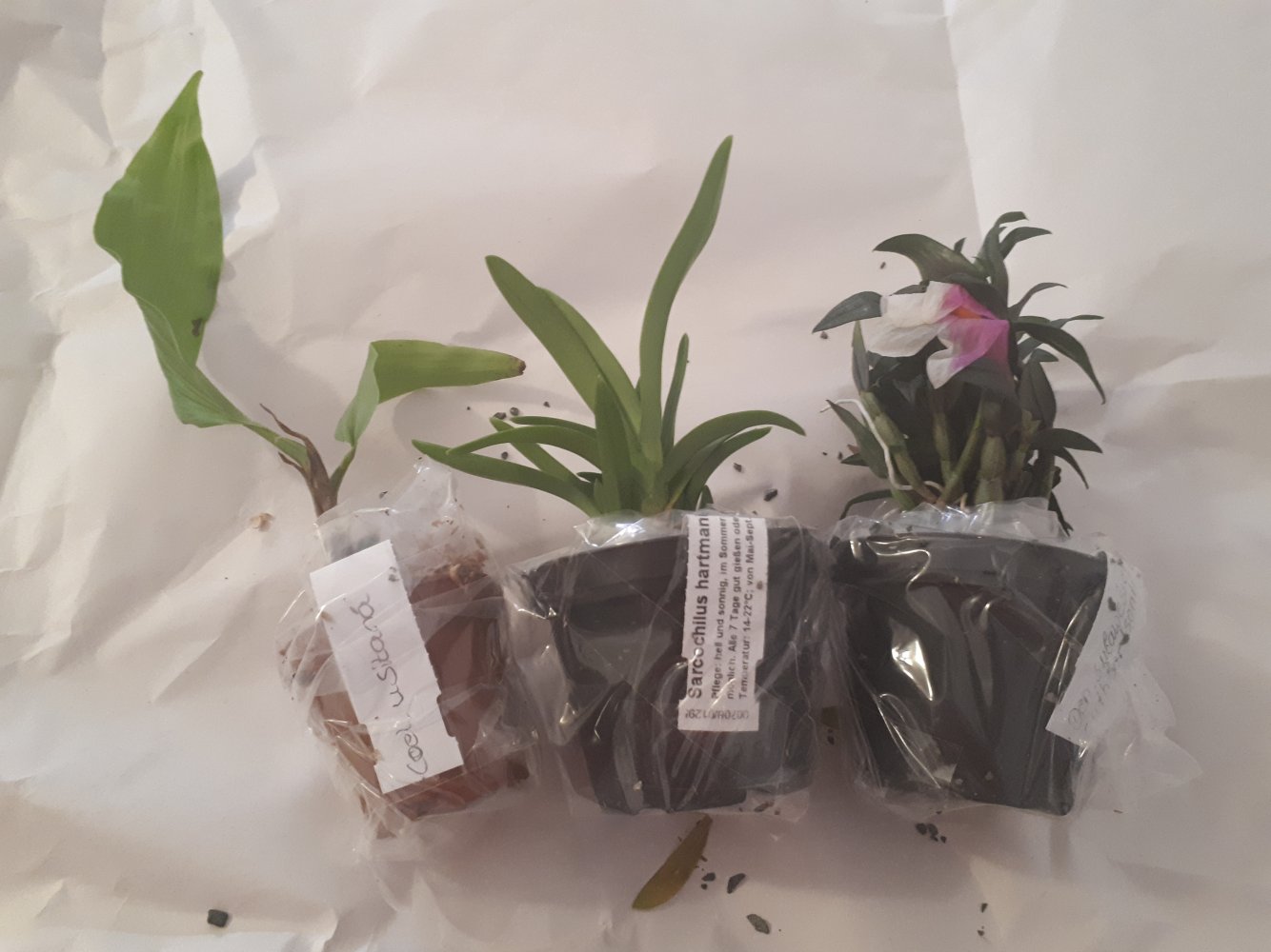 мох у специозы мокрый, но ей это похоже только в радость. Башмак при распаковке вывалился из горшка, ощущение, что его только пересадили, и горшок для него чужой. Все растения упакованы только в туалетную бумагу, причём весьма драную, без верхнего бумажного слоя. Похоже сильно на таможне трясли.