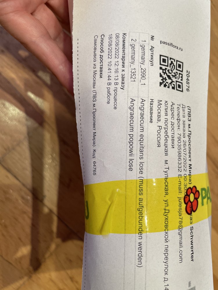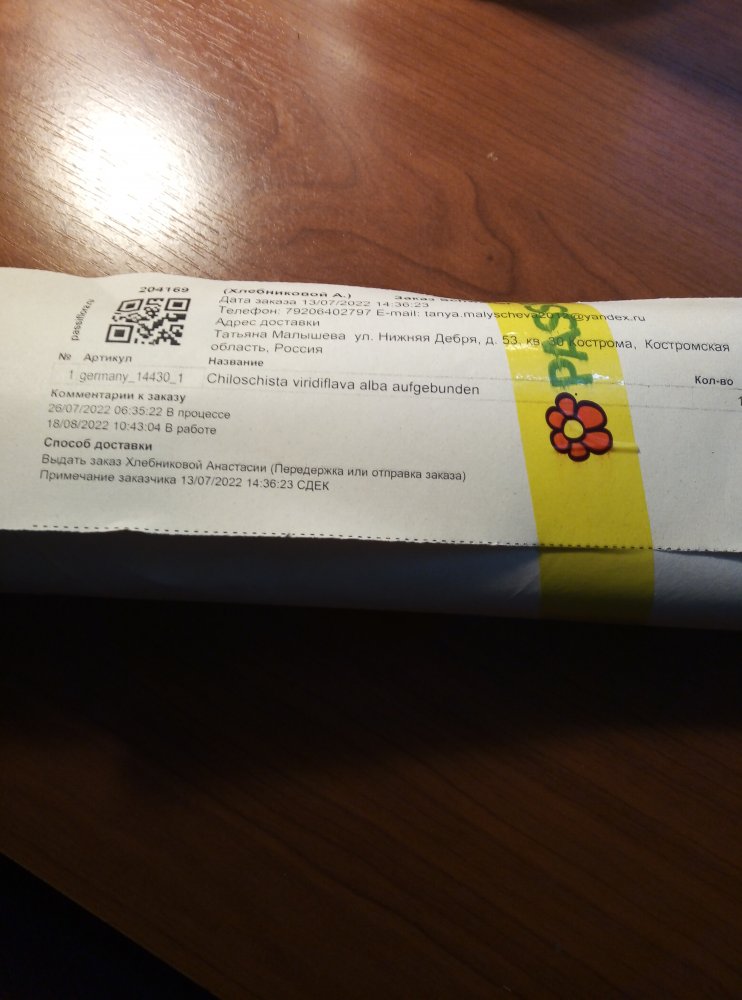 Заказ 204708 от 22 июля. Получен через день от смс.
